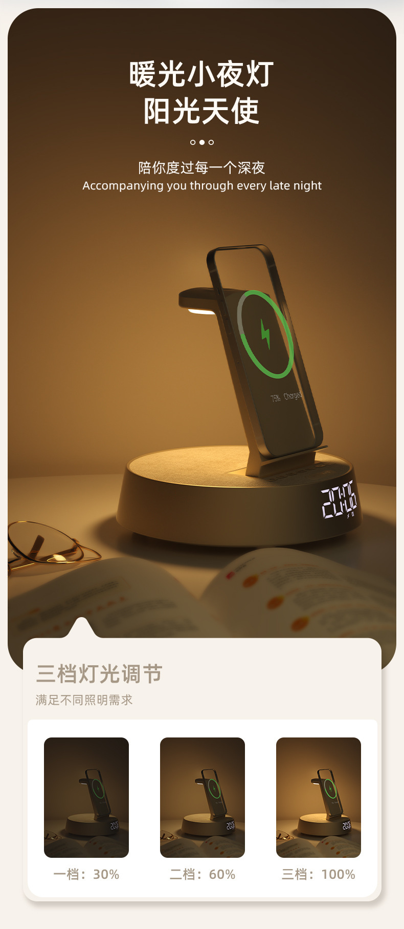 무선 충전 블루투스 스피커 시계 알람 시계 분위기 램프 음악 책상 램프 다기능 스마트 오디오 나이트 라이트 침대 옆스토어 가기