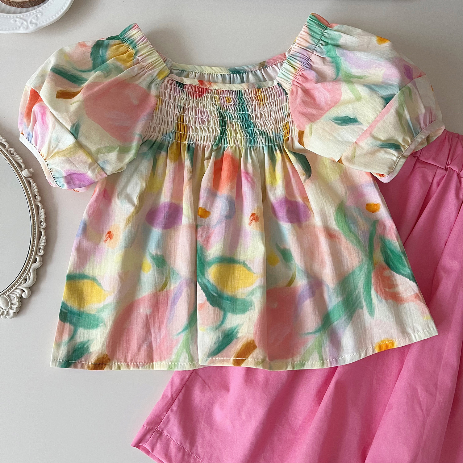 여자 세트 2024 여름 새로운 한국식 반팔 꽃 인형 셔츠 와이드 레그 바지 투피스 크로스 보더 헤어스토어 가기