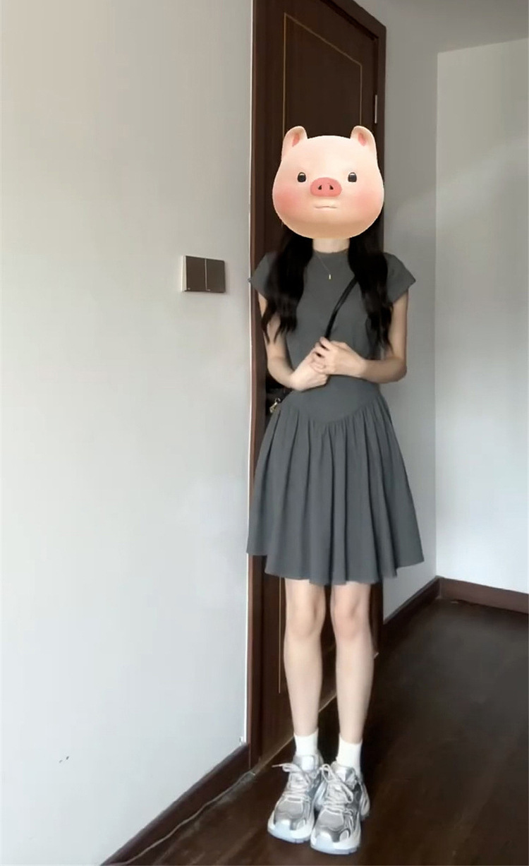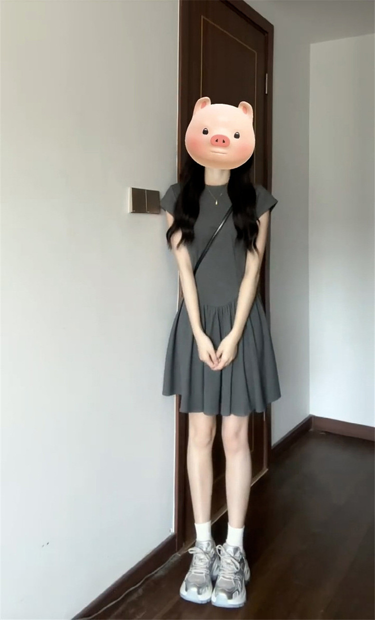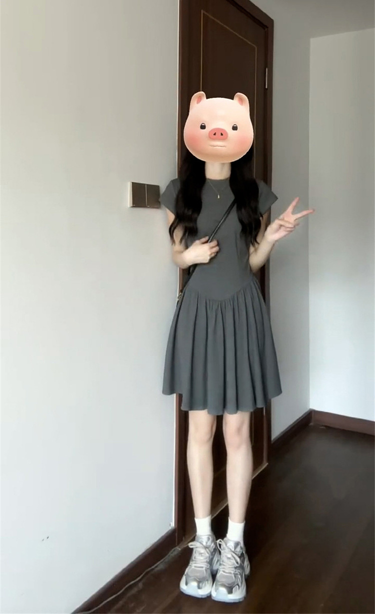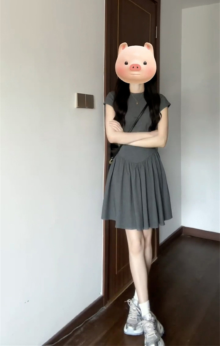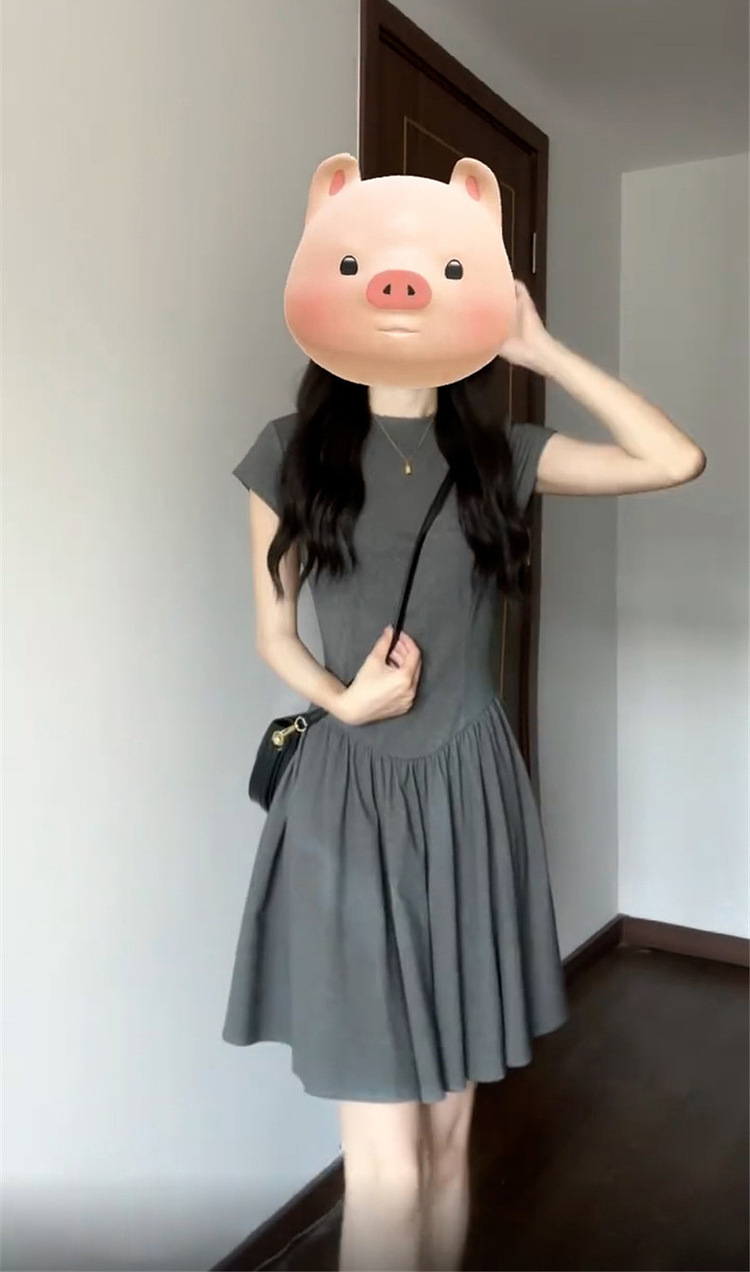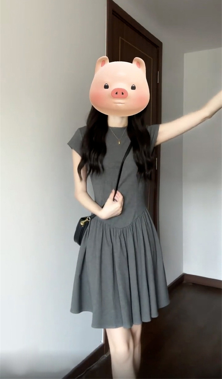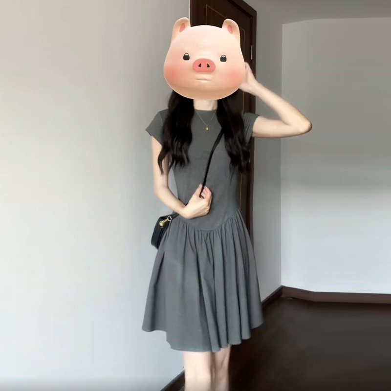 프렌치 그레이 반팔 티셔츠 원피스 어린이 타이트 허리 우아한 디자인 센스 틈새 캐주얼 쇼트 스커트 여름스토어 가기