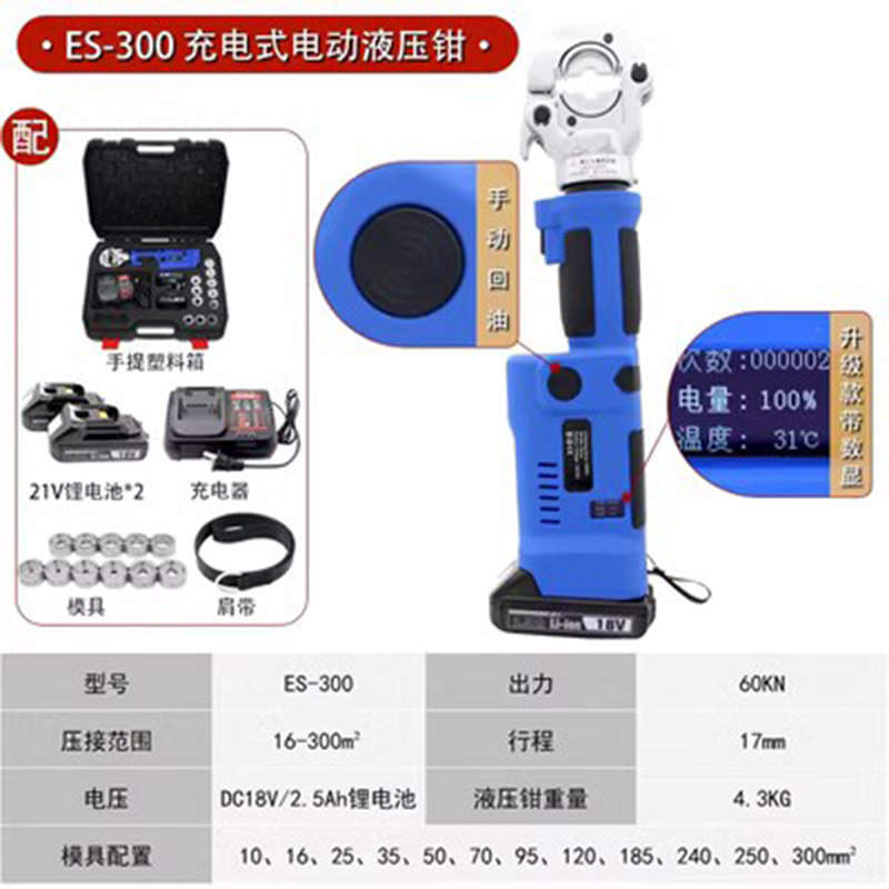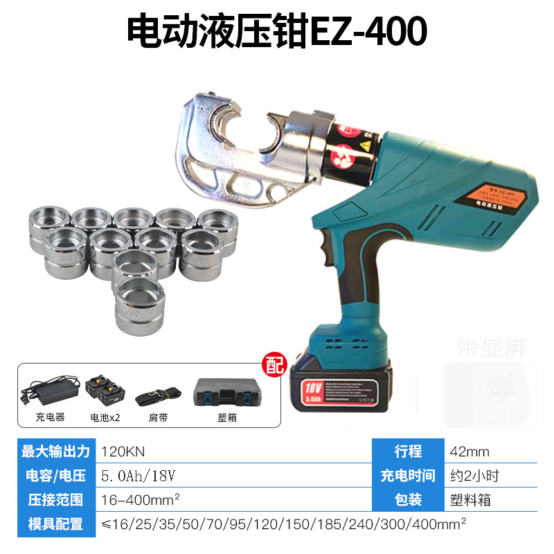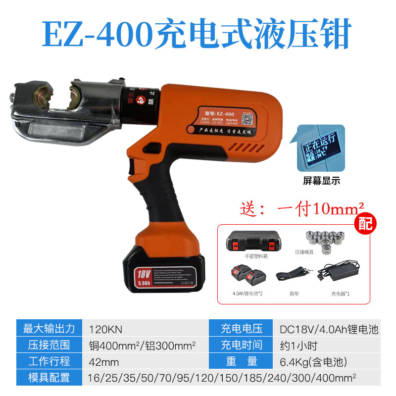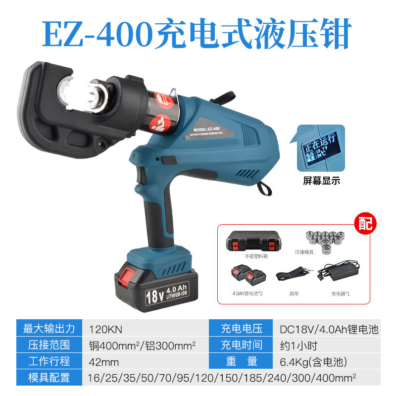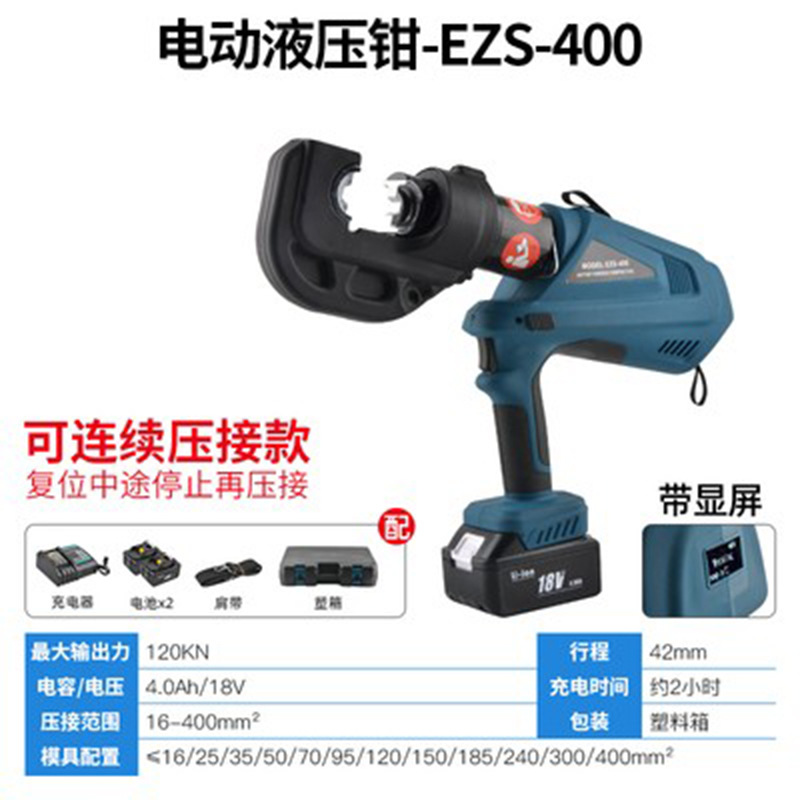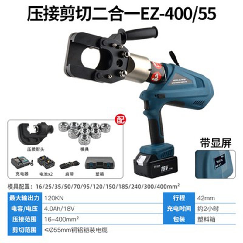 충전식 유압 클램프 16-400 구리-알루미늄 와이어 스트리핑 노즈 전동 압착 클램프(압착 리튬 배터리 케이블 커터 포함)스토어 가기