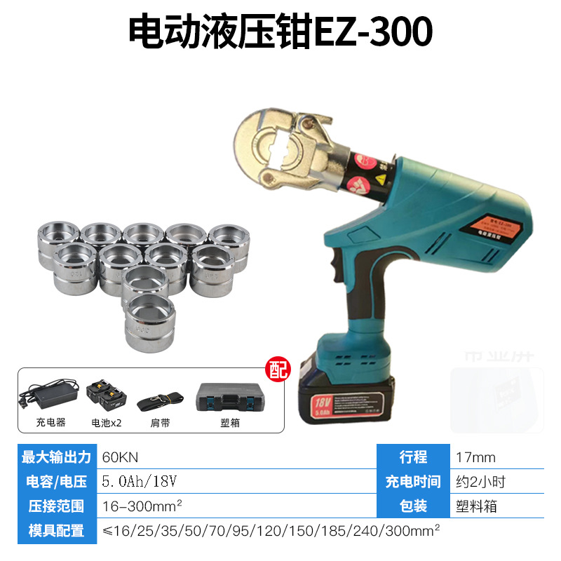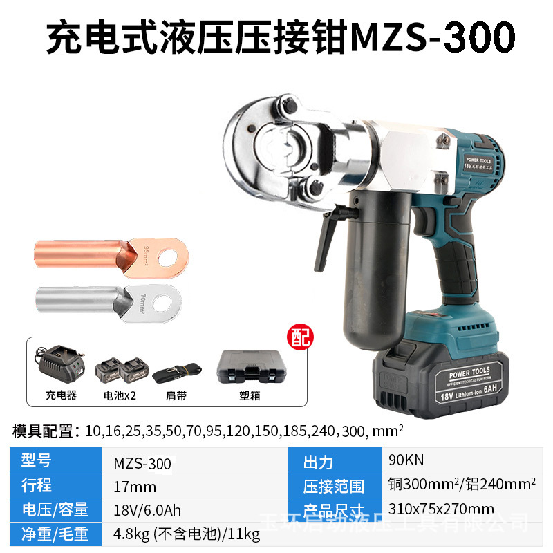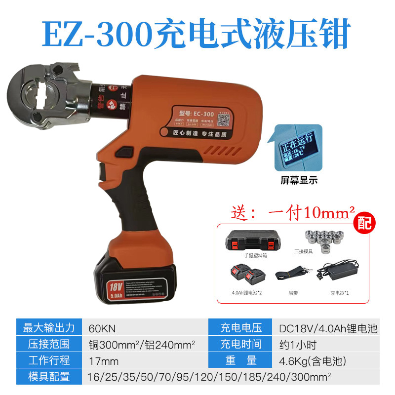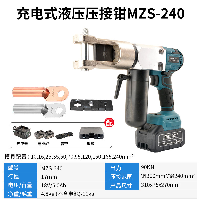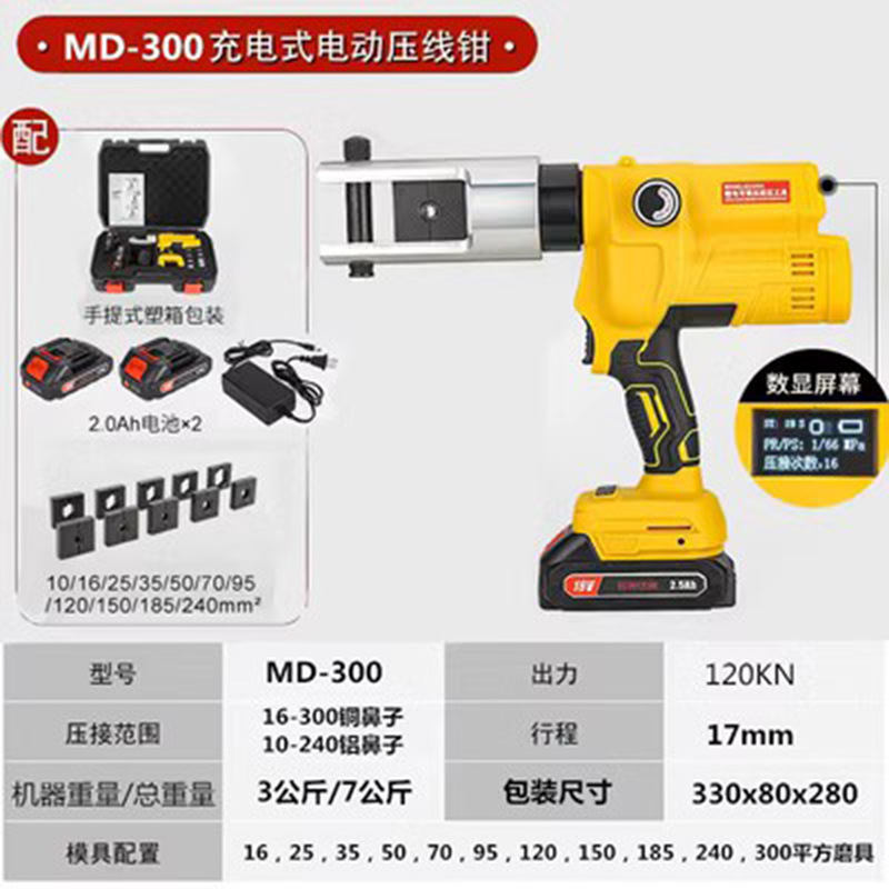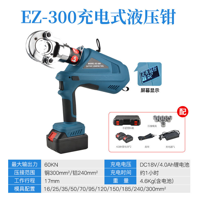 충전식 유압 클램프 16-400 구리-알루미늄 와이어 스트리핑 노즈 전동 압착 클램프(압착 리튬 배터리 케이블 커터 포함)스토어 가기