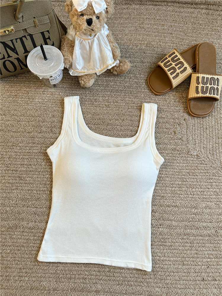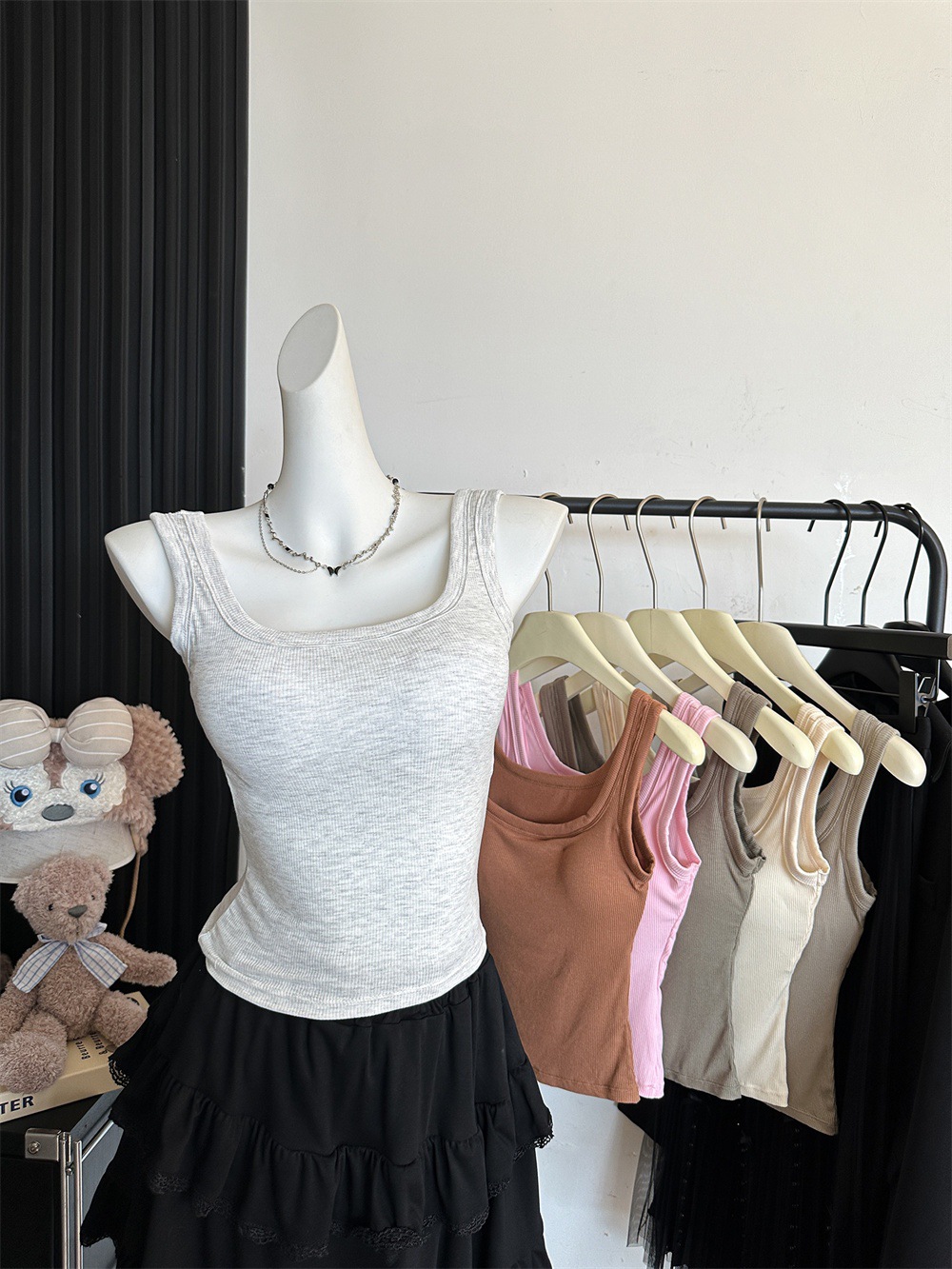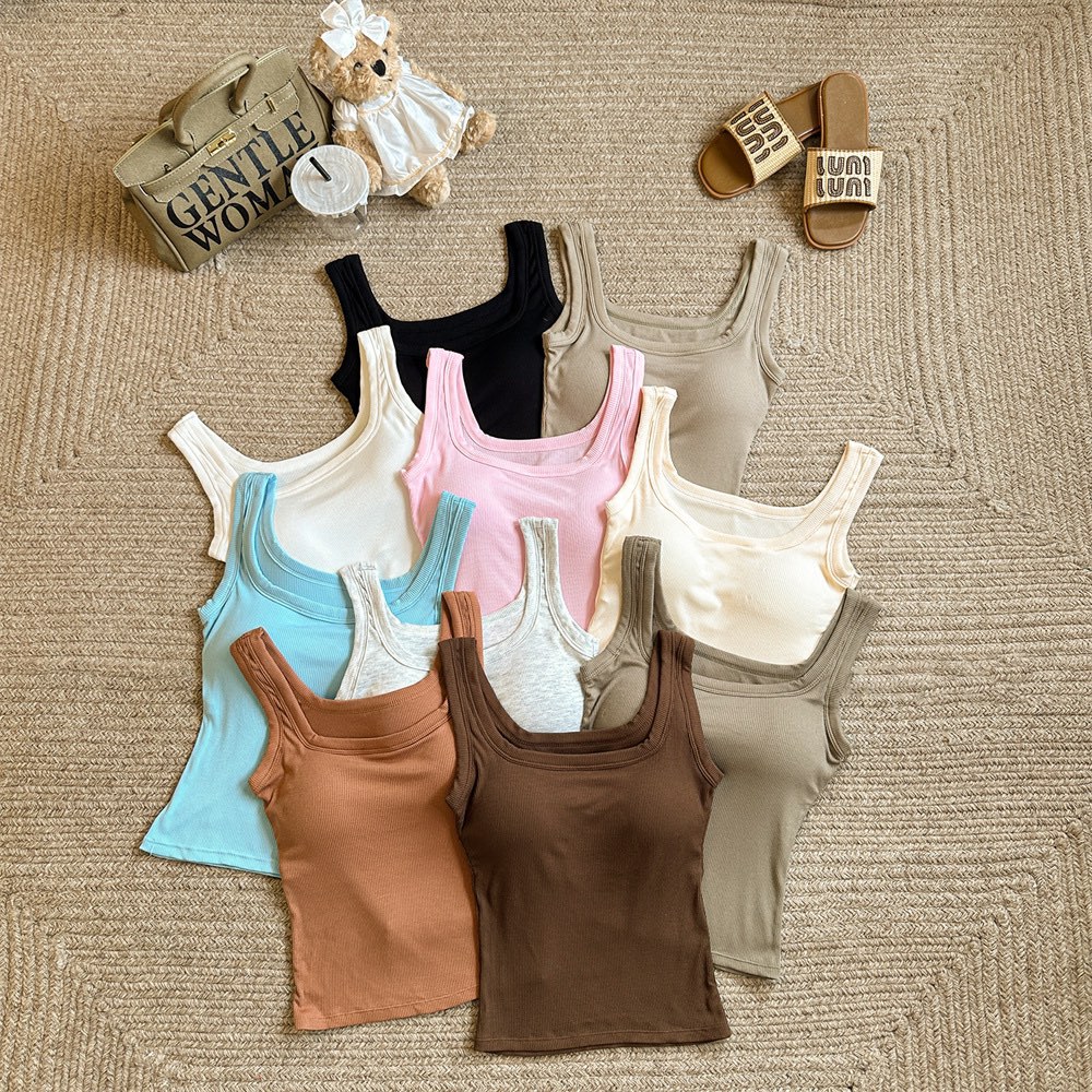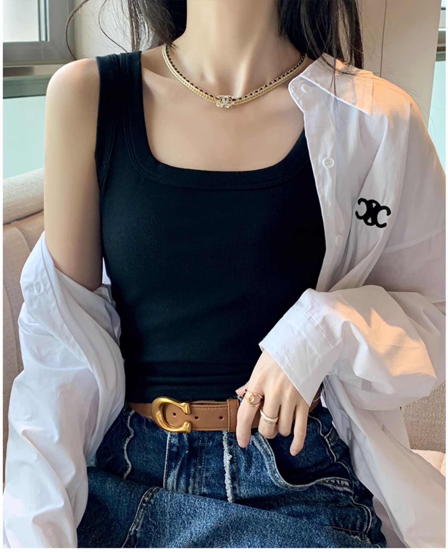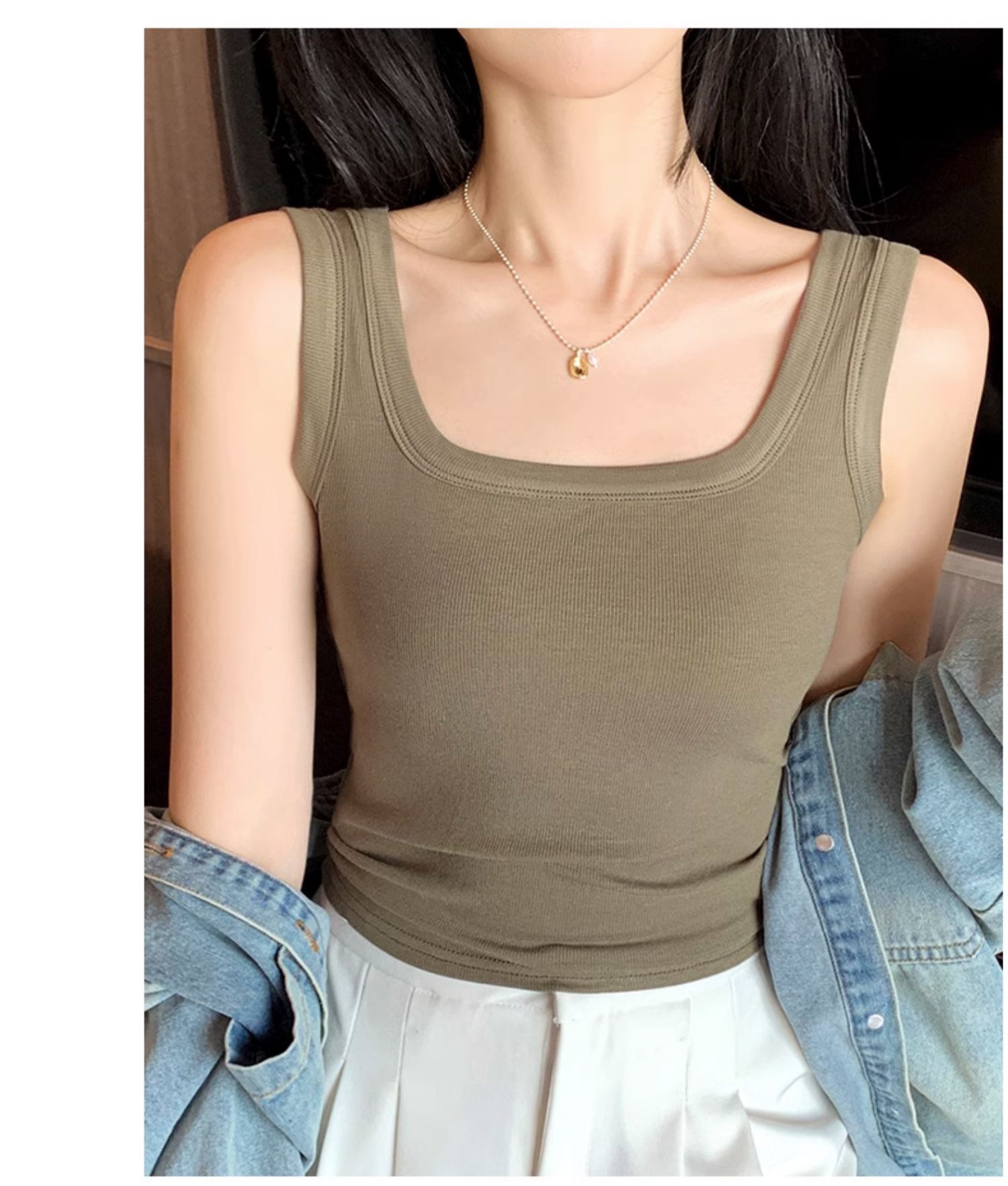한국식 스퀘어 칼라 카미솔 간단한 올매치 편안한 유방 커버 가슴 패드베이스 핫 걸 슬림핏 민소매 탑스토어 가기