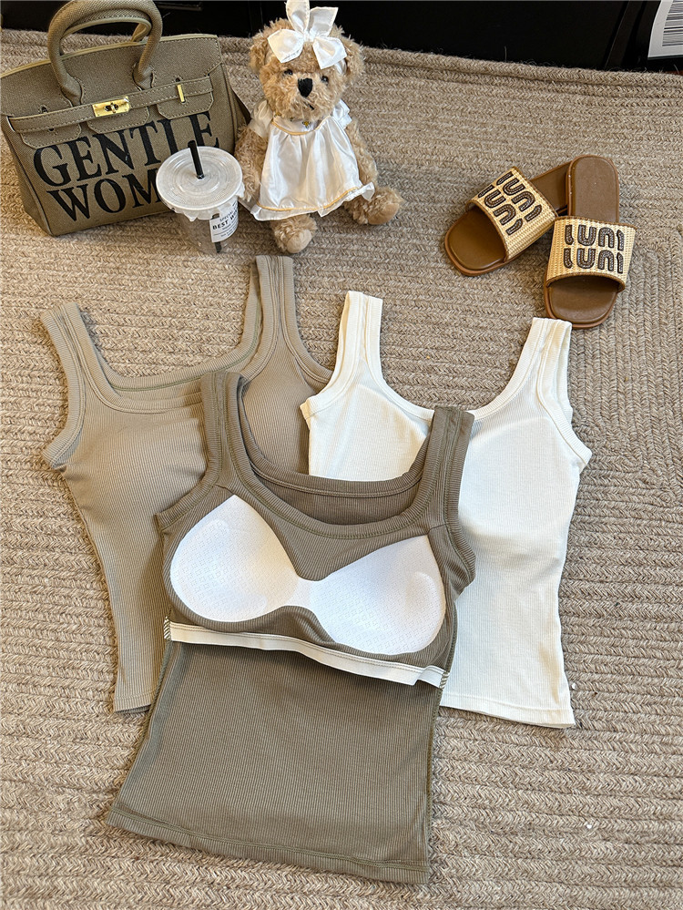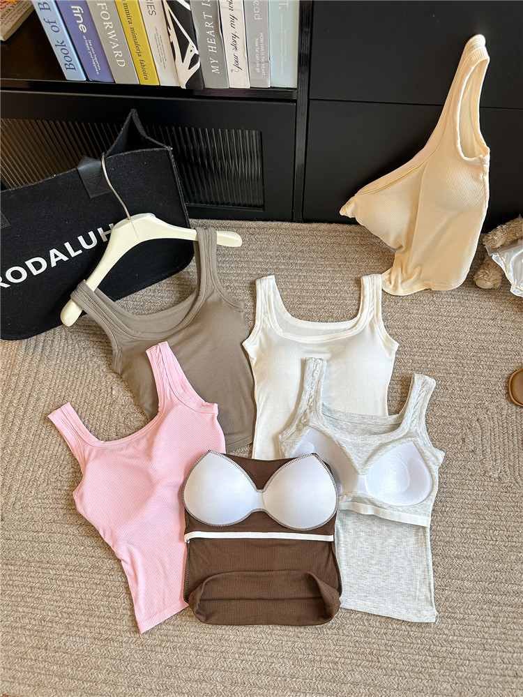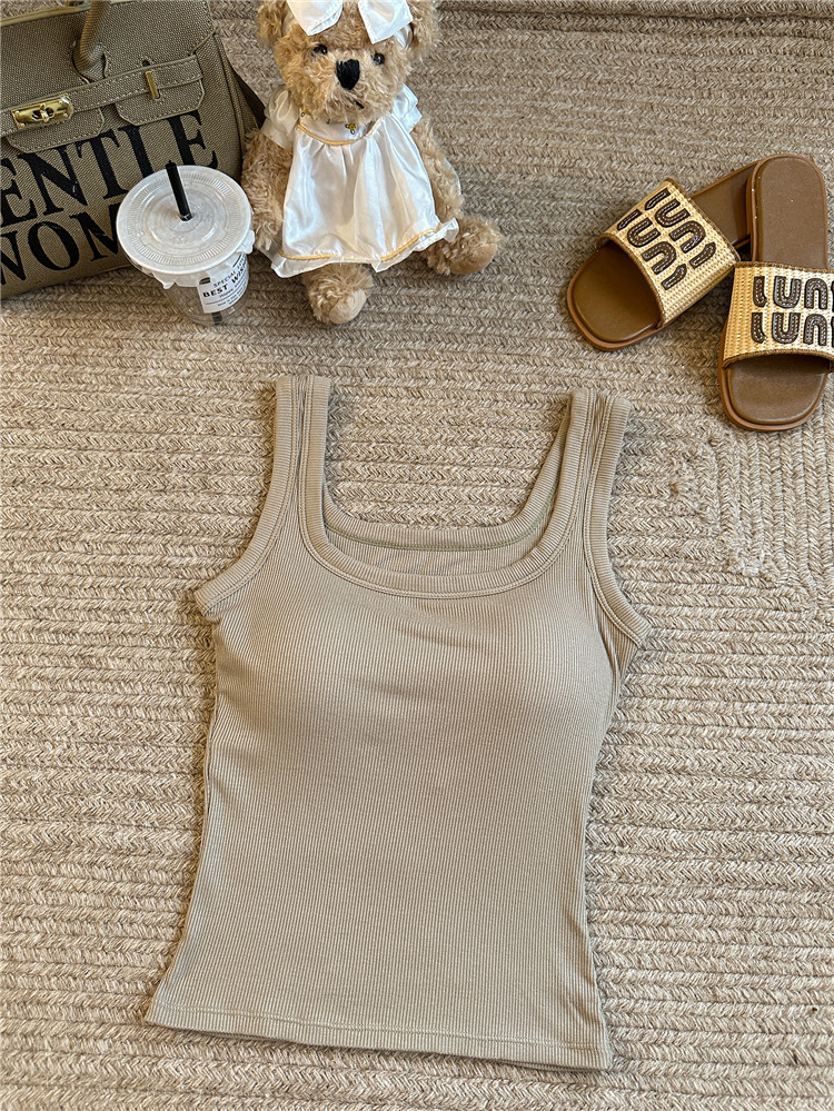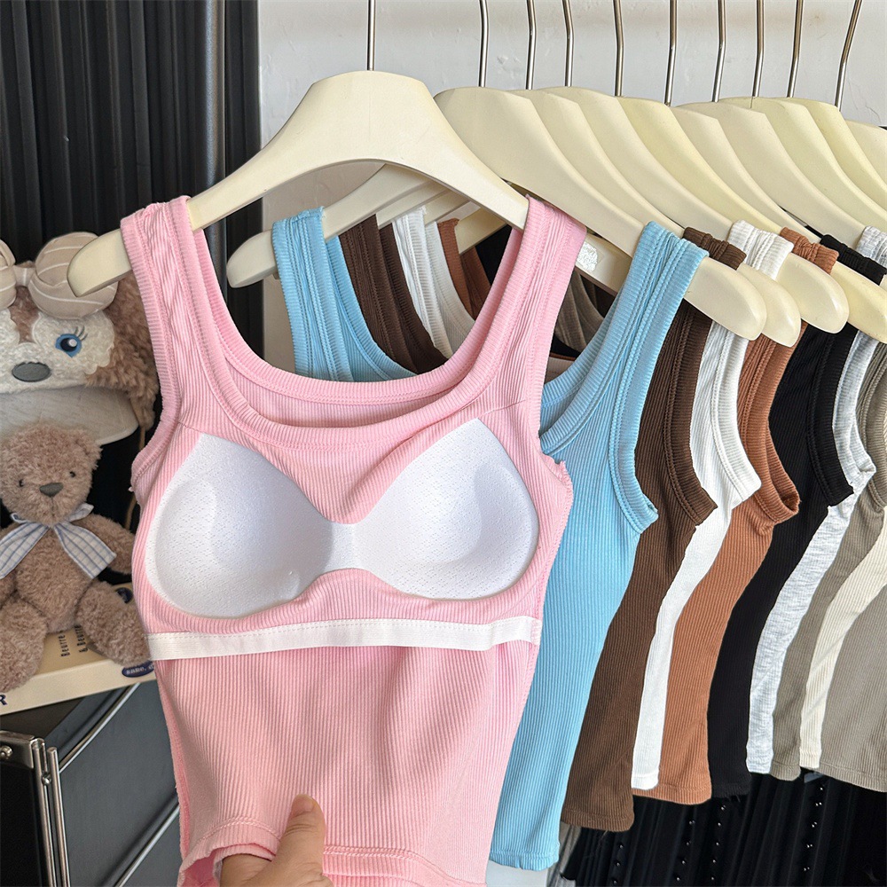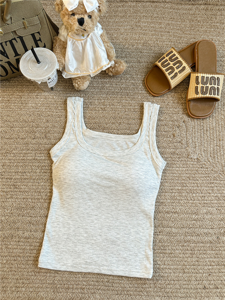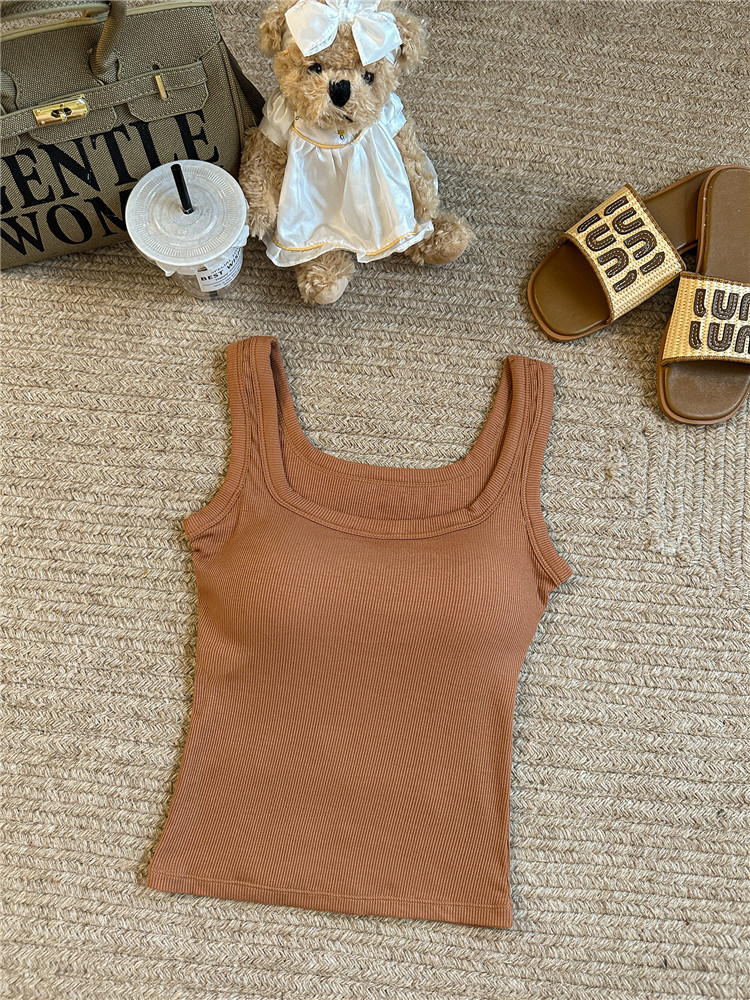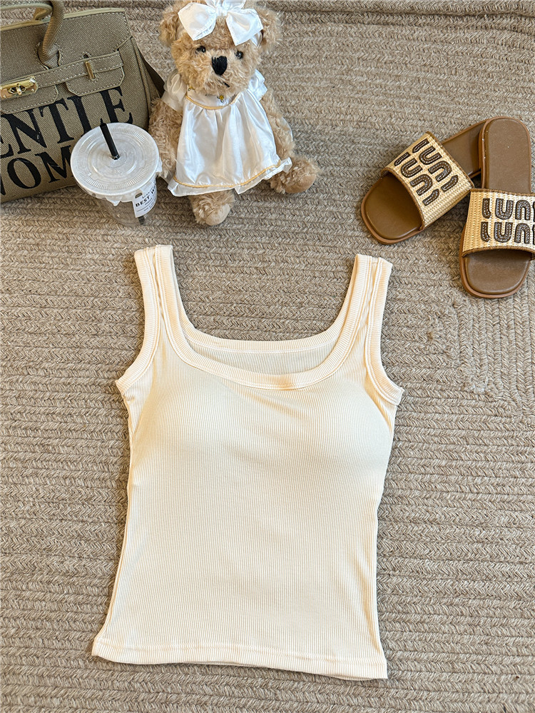 한국식 스퀘어 칼라 카미솔 간단한 올매치 편안한 유방 커버 가슴 패드베이스 핫 걸 슬림핏 민소매 탑스토어 가기