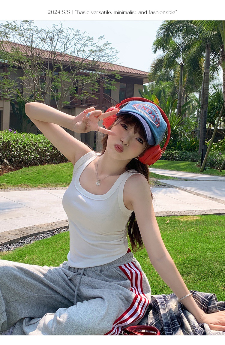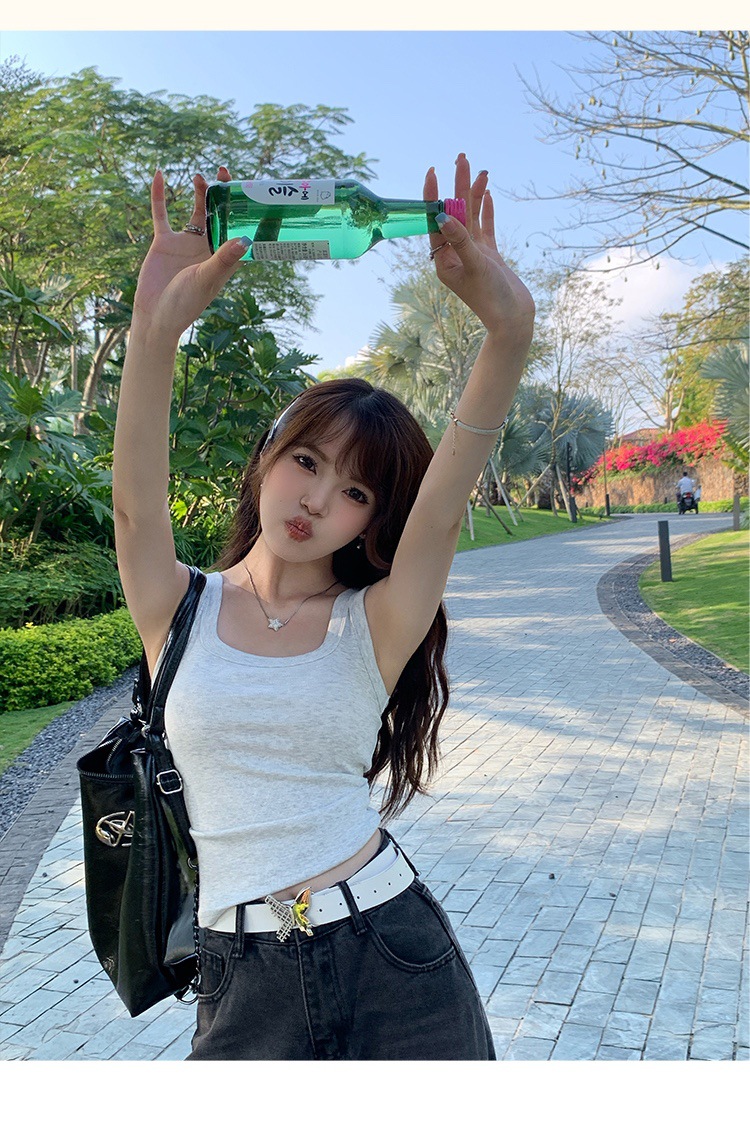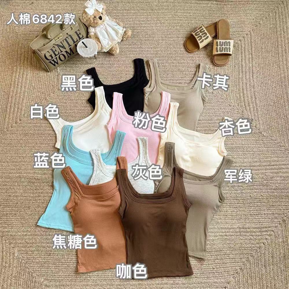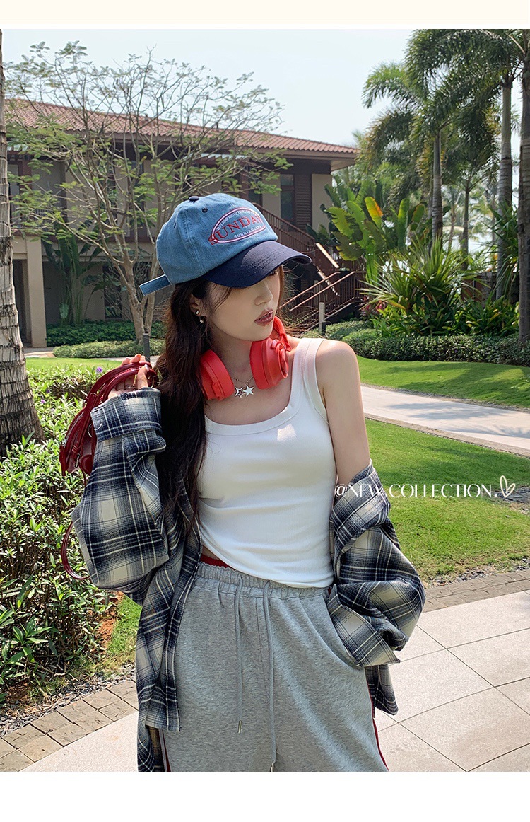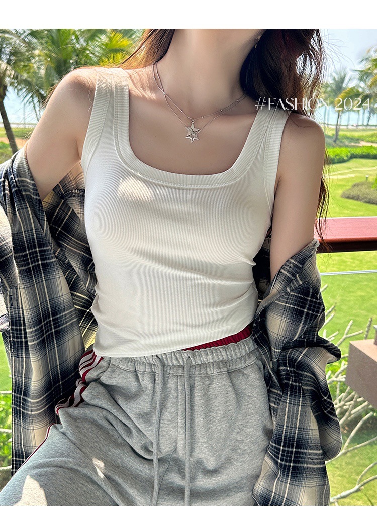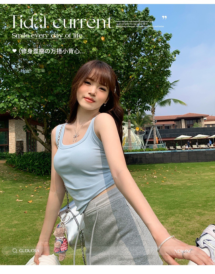 한국식 스퀘어 칼라 카미솔 간단한 올매치 편안한 유방 커버 가슴 패드베이스 핫 걸 슬림핏 민소매 탑스토어 가기