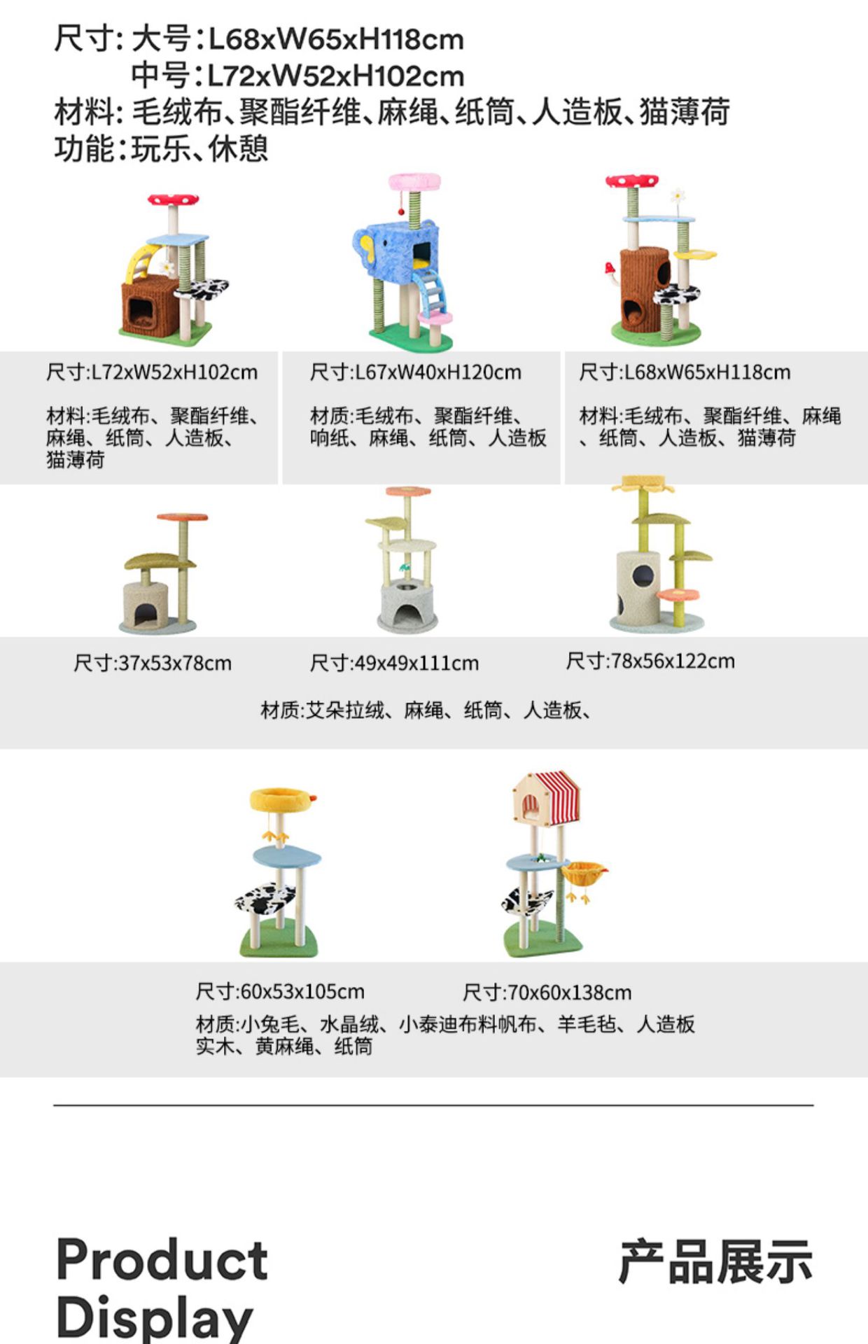 • 책상 램프 다채로운 다층 고양이 등반 프레임 L60xW52xH137cm