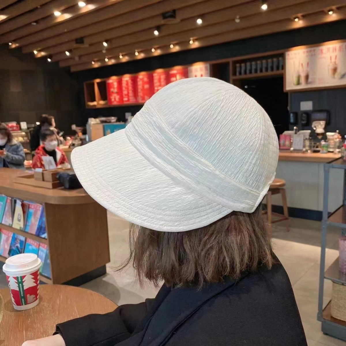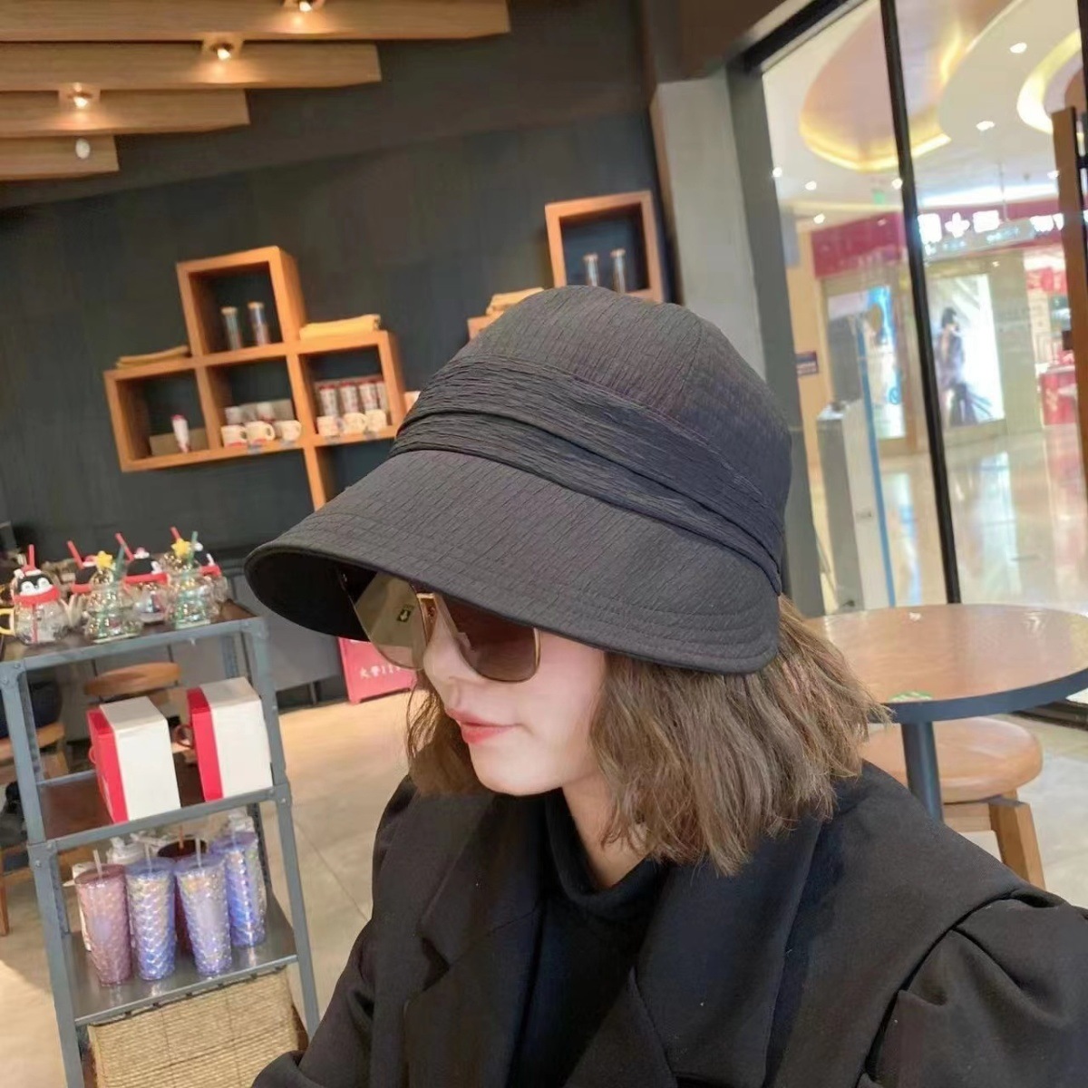 와플 모자 여성의 가을 새로운 올 매치 빅 브림 얼굴 작은 한국 버전 햇살 어부 모자 큰 머리 접히는 유행스토어 가기