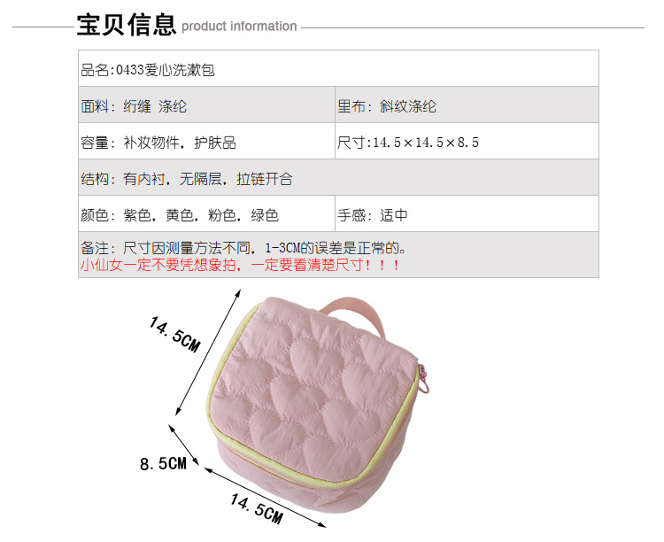 한국 스타일 슈퍼 귀여운 Ins 신선한 사랑 화장품 가방 가방 대용량 휴대용 여행 핸드백 화장실 가방