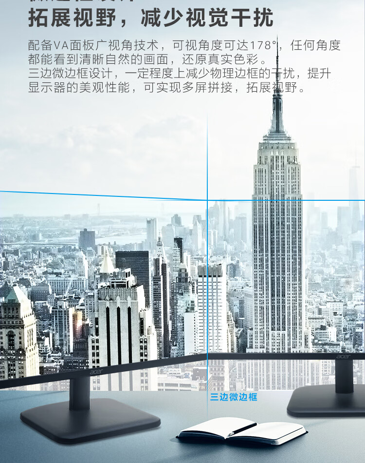 에이서 에이서 모니터 21.5inch 풀 HD 로우 블루라이트 벽걸이형 100HZ 고주사율 스크린 EK221Q
