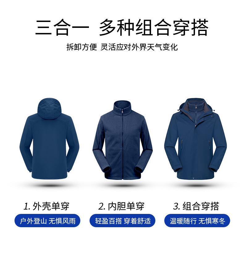 야외 충전 의류 3 대 1 분리 방수 방풍 기모 두꺼운 2 피스 스키 등산 의류 작업복스토어 가기