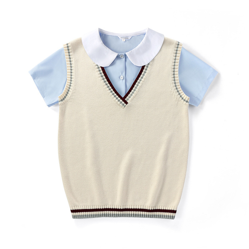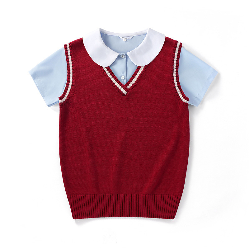 풀오버 민소매 느슨한 니트 스웨터 조끼 짧은 소매 셔츠 커플 부모-자녀 여자 친구 클래스 유니폼 학교 유니폼 정원 유니폼 세트
