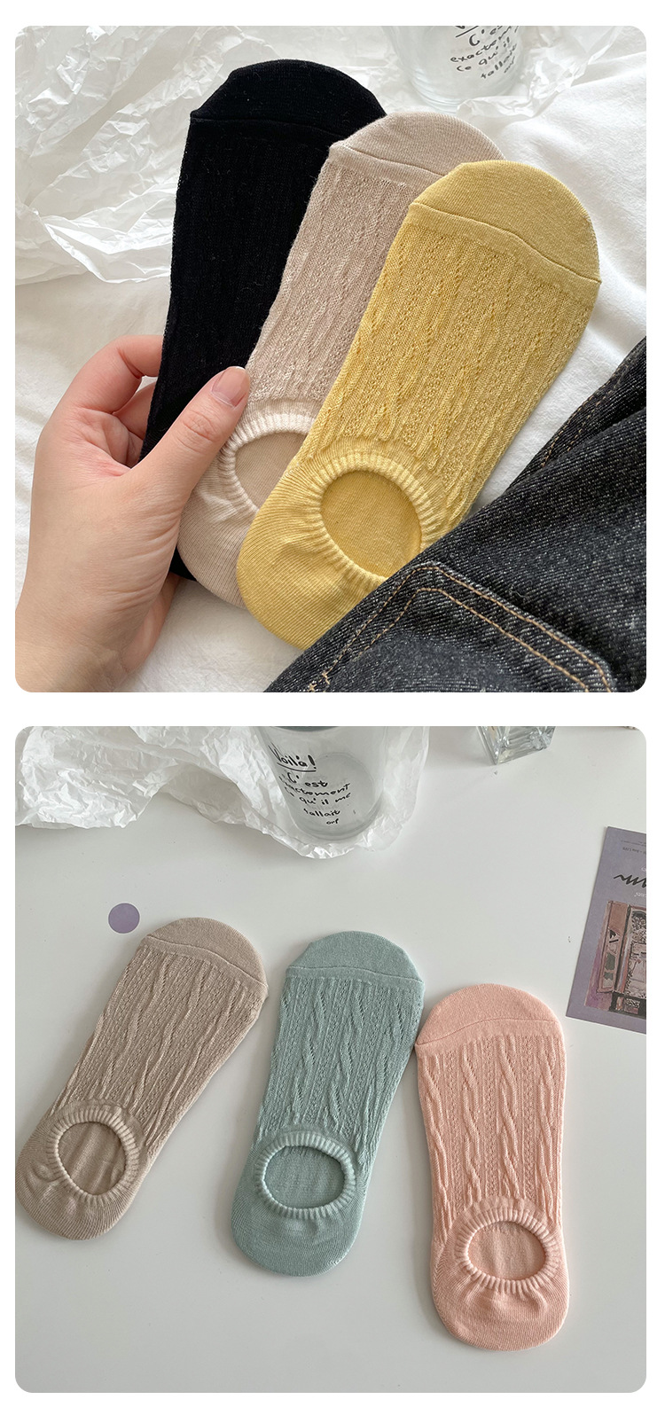 여성용 얇은 봄 여름 양말, 숨김 양말, 통기성 있는 실리콘 미끄럼 방지, 끈 없는 단색 보트 양말스토어 가기