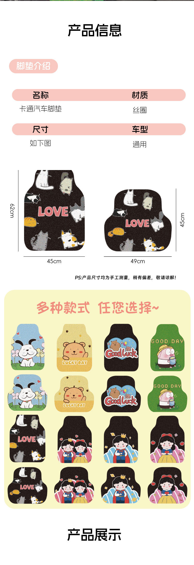 공장 직접 만화 귀여운 동물 자동차 매트 5 인승 자동차 유니버설 발 매트 바닥 매트 자동차 카펫 와이어 링