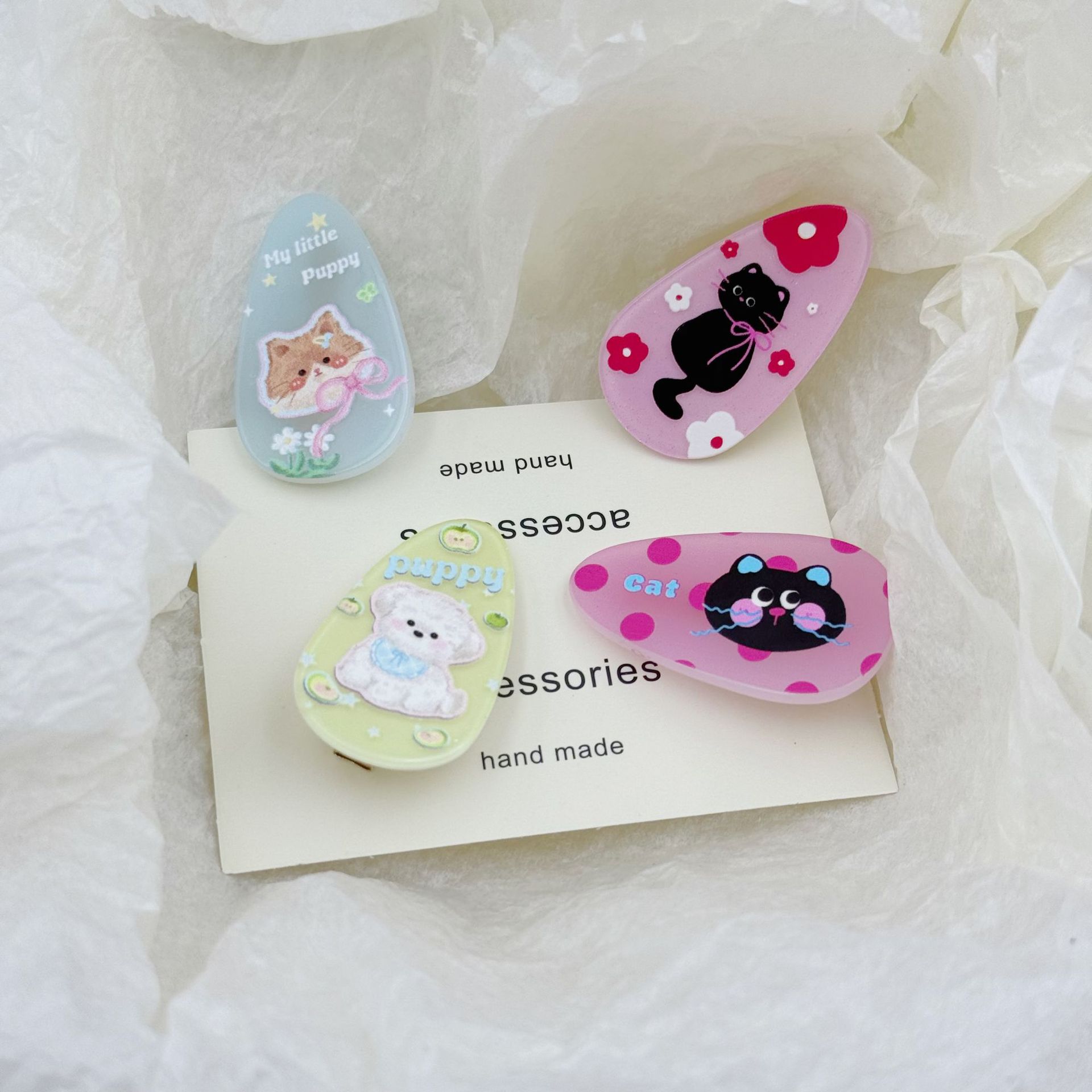 만화 귀여운 새끼 고양이 강아지 헤어 클립 부드러운 귀여운 달콤한 소녀 사이드 뱅 클립 어린이 재미 모든 경기 학생 헤어 액세서리 머리 주소 여성