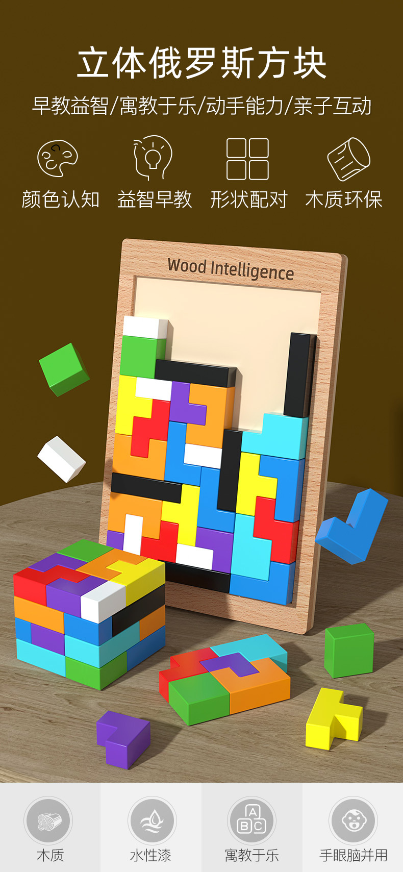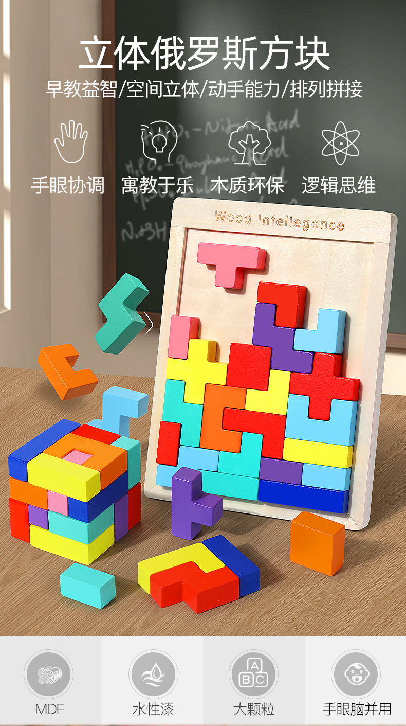 어린이 두꺼운 대형 테트리스 블록 퍼즐 아기 조기 교육 및 정보 소년 및 소녀 조립 장난감스토어 가기