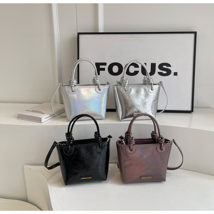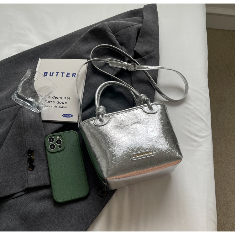 대외 무역 여름 슈퍼 핫 실버 작은 가방 여성 가방 2024 새로운 패션 도매 패션 메신저 가방 휴대용 버킷 가방
