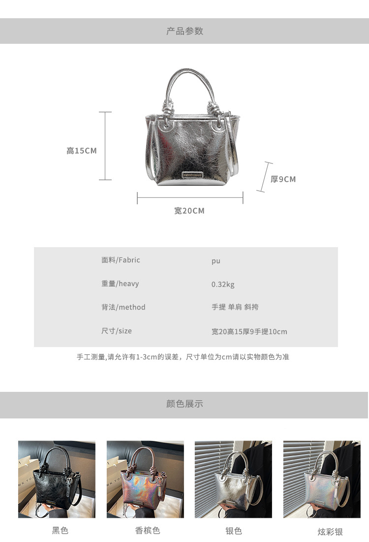 대외 무역 여름 슈퍼 핫 실버 작은 가방 여성 가방 2024 새로운 패션 도매 패션 메신저 가방 휴대용 버킷 가방스토어 가기