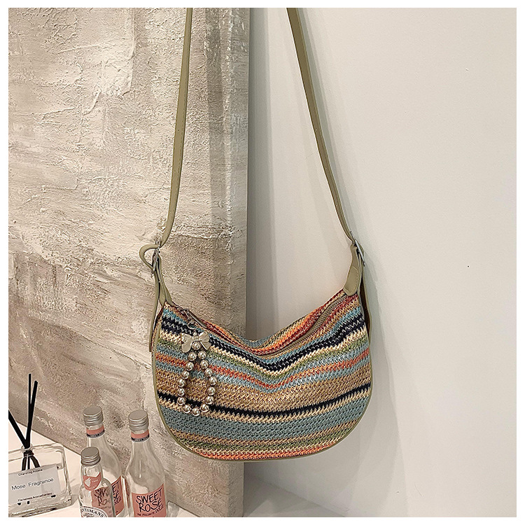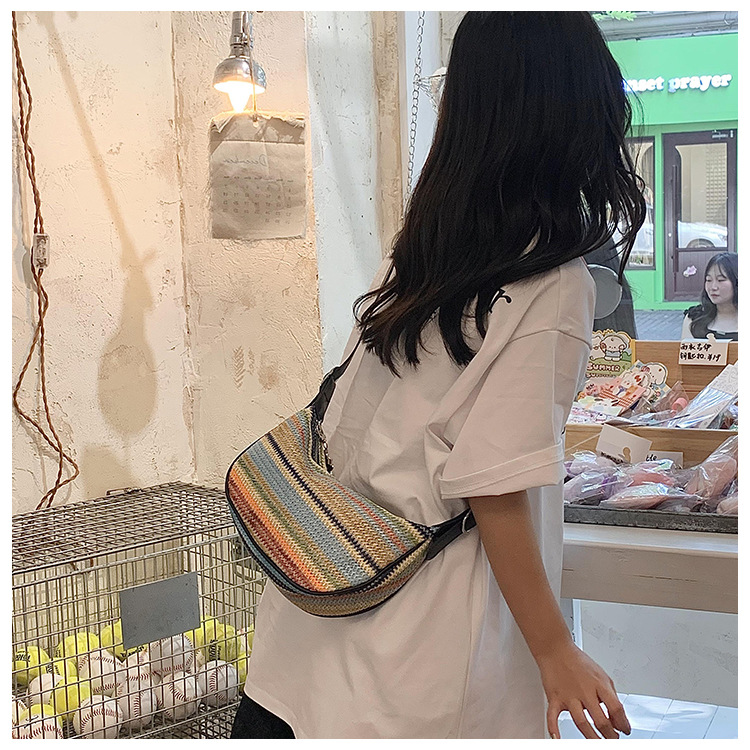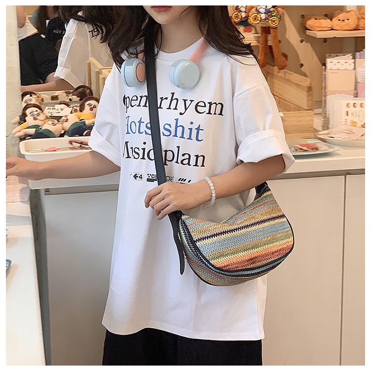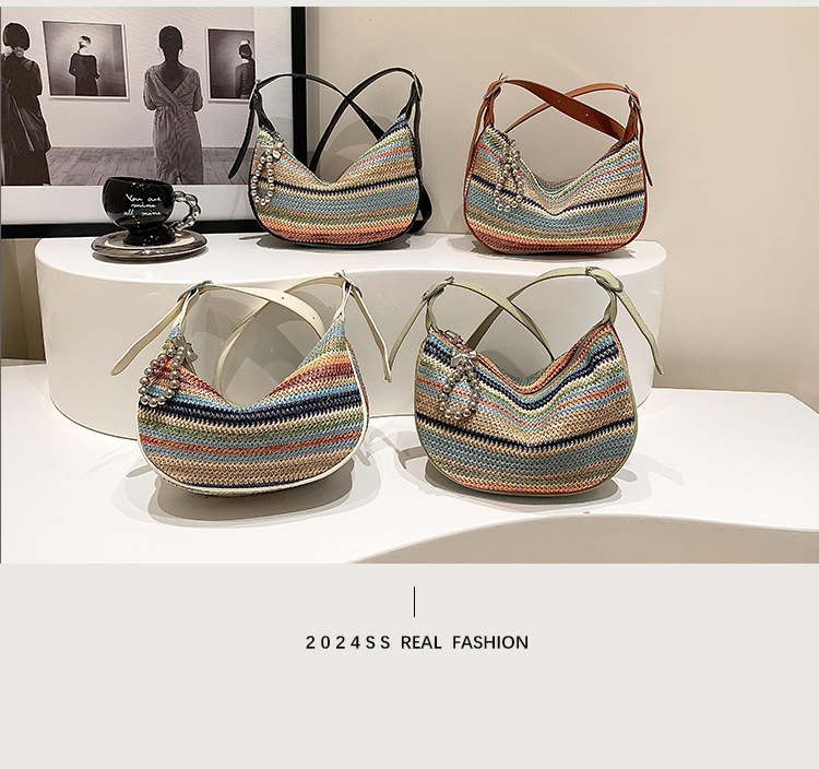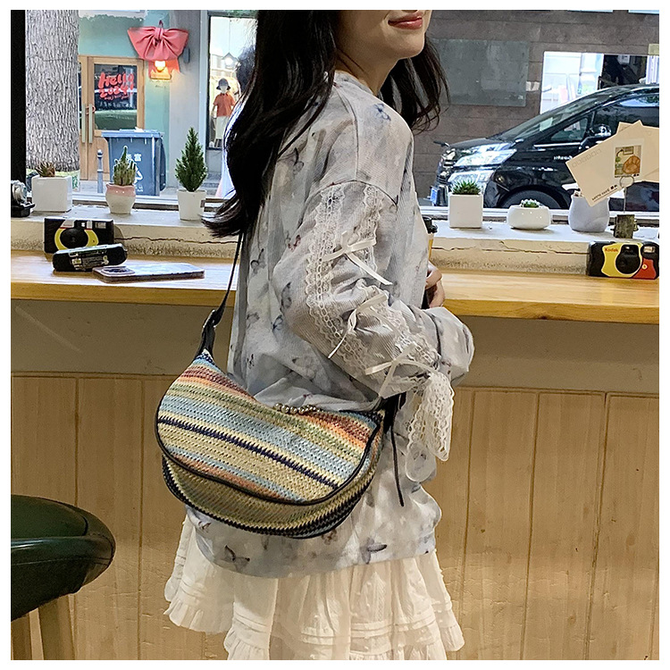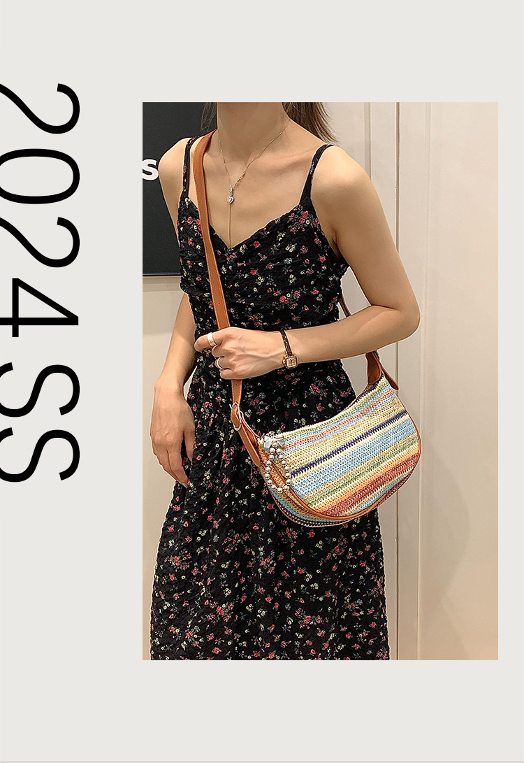 여름 틈새 만두 백 2024 새로운 패션 밀짚 짠 어깨 크로스 바디 백 언더암 가방 하이 엔드 여성용 가방스토어 가기