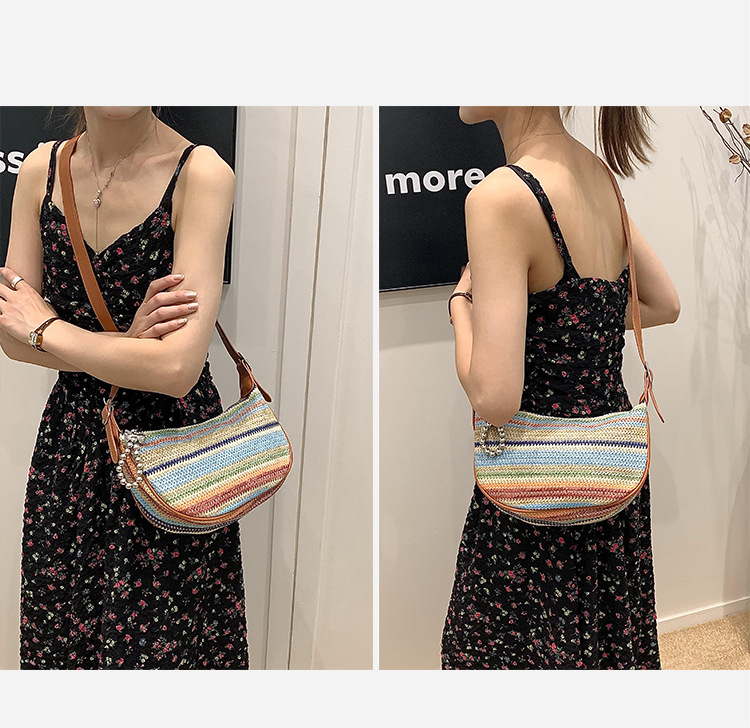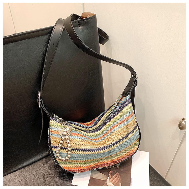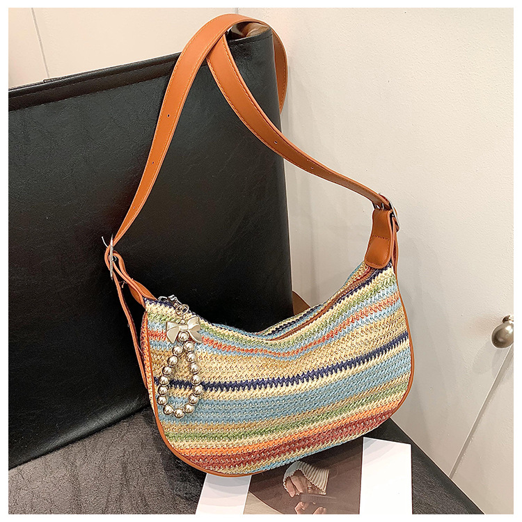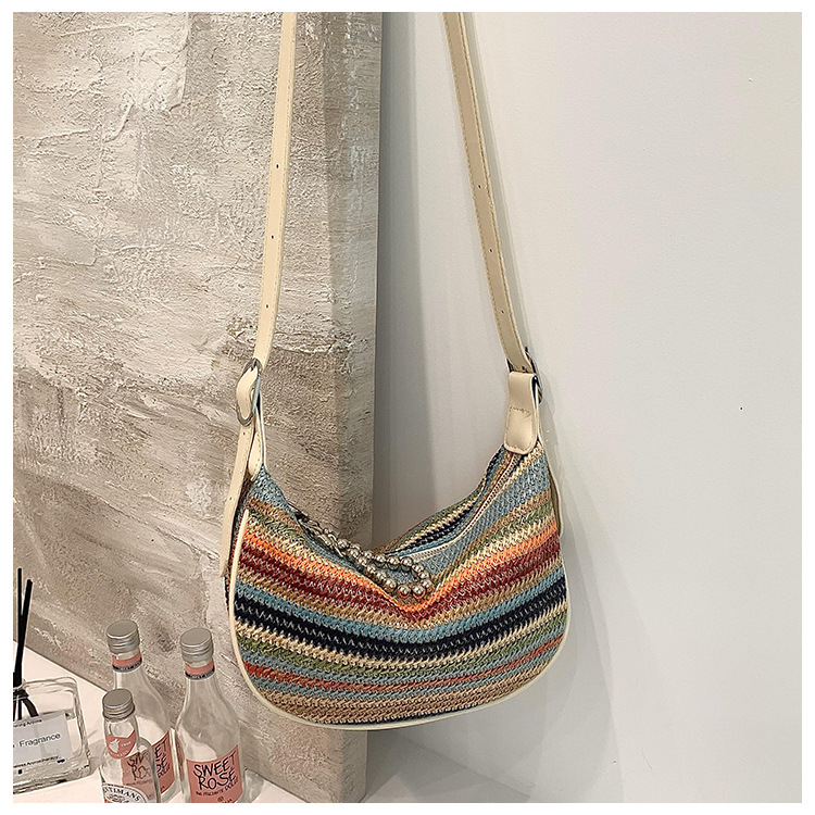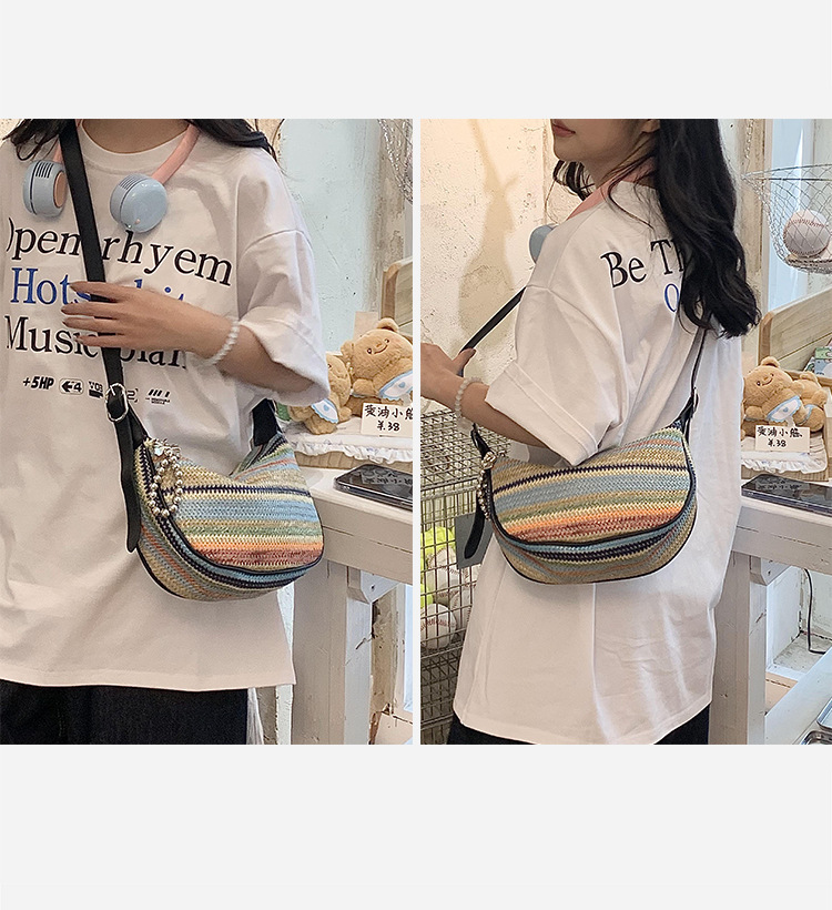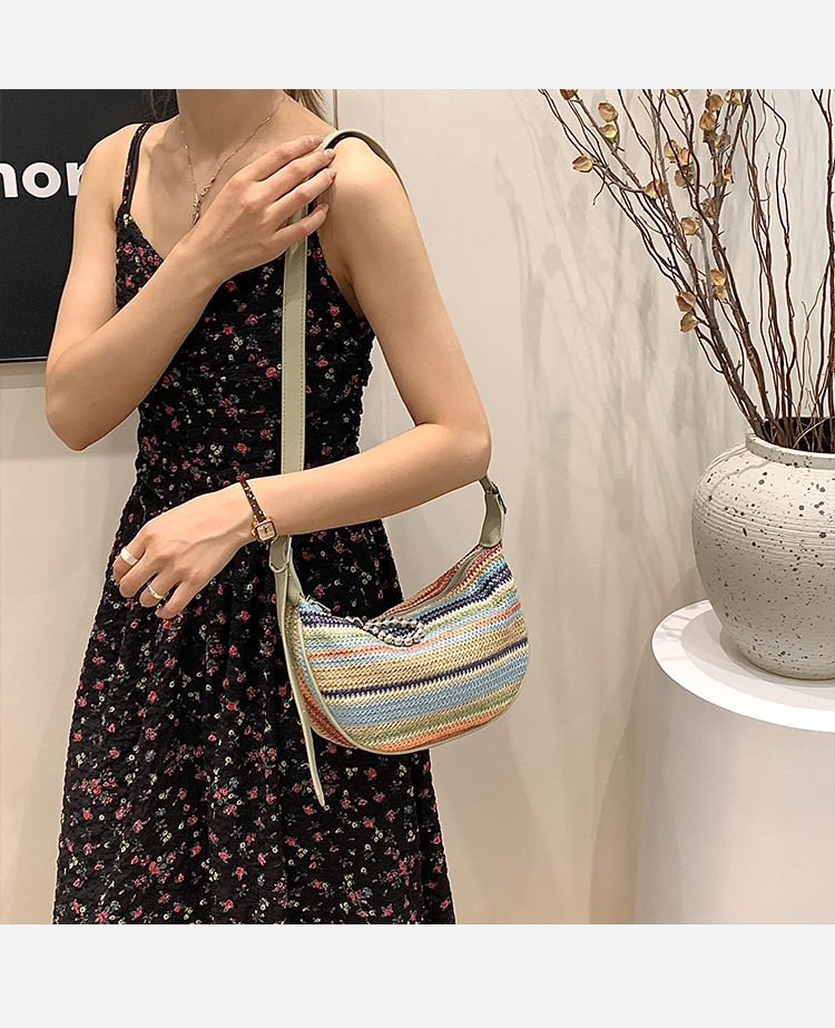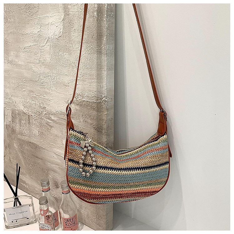 여름 틈새 만두 백 2024 새로운 패션 밀짚 짠 어깨 크로스 바디 백 언더암 가방 하이 엔드 여성용 가방스토어 가기