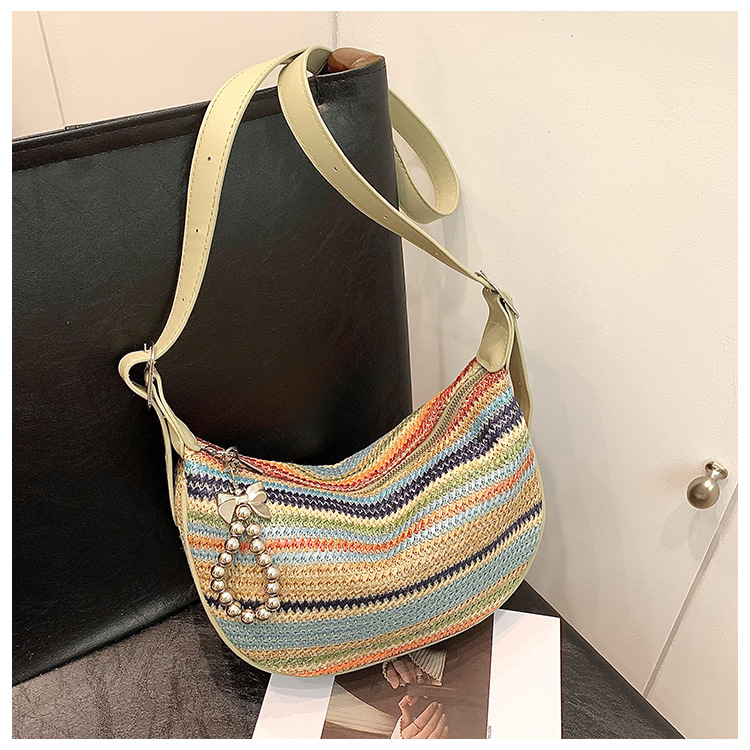 여름 틈새 만두 백 2024 새로운 패션 밀짚 짠 어깨 크로스 바디 백 언더암 가방 하이 엔드 여성용 가방