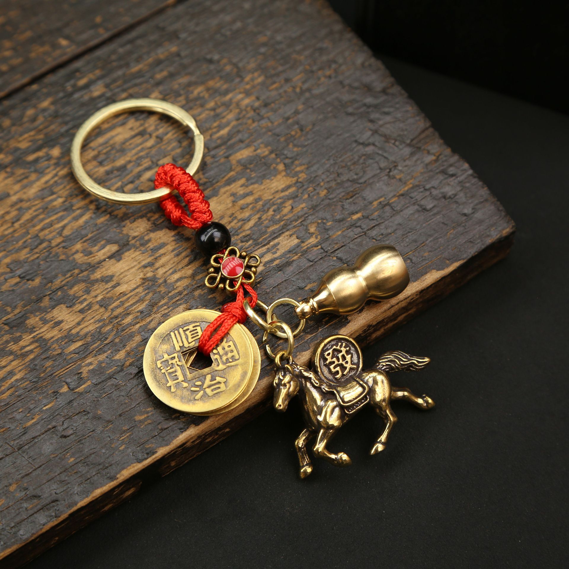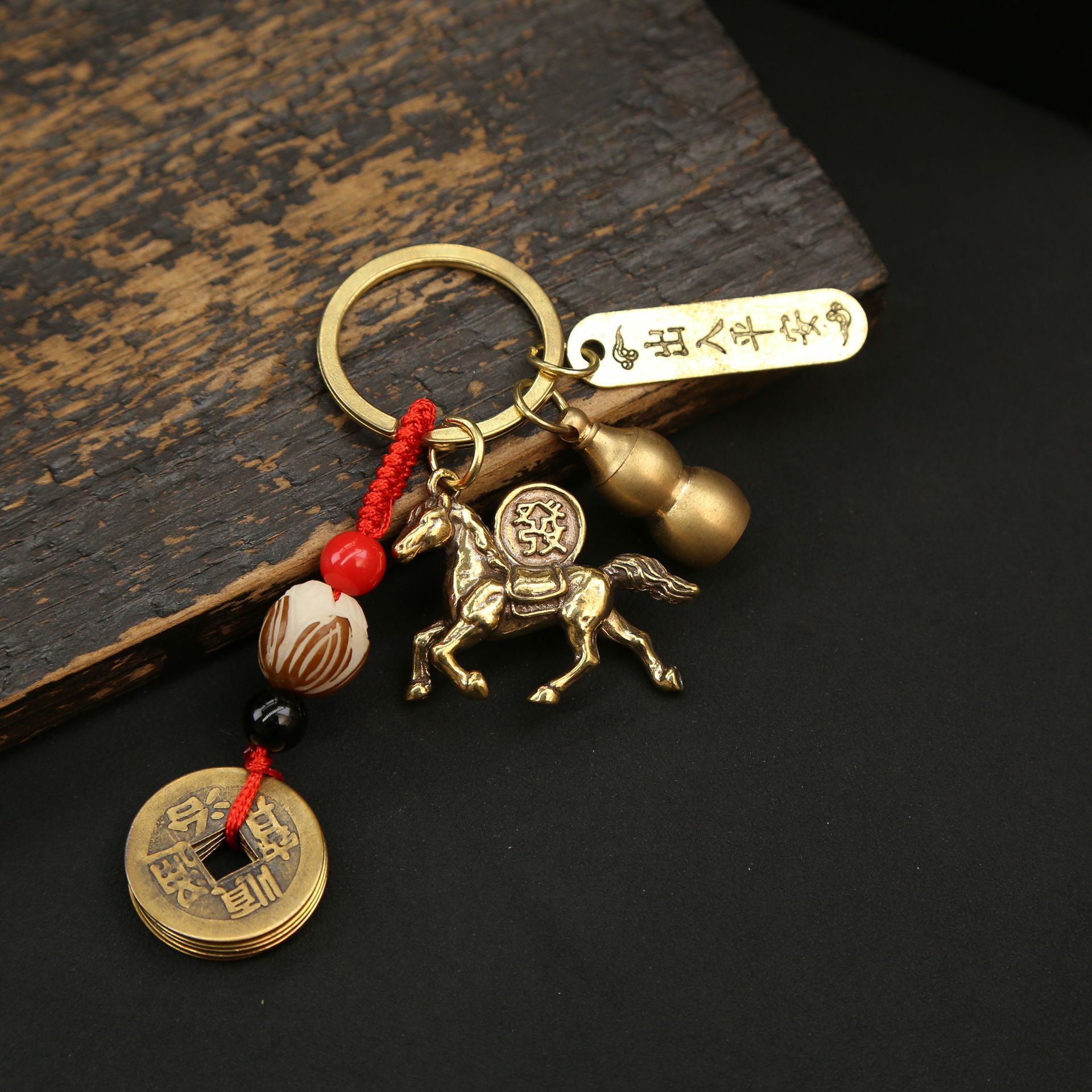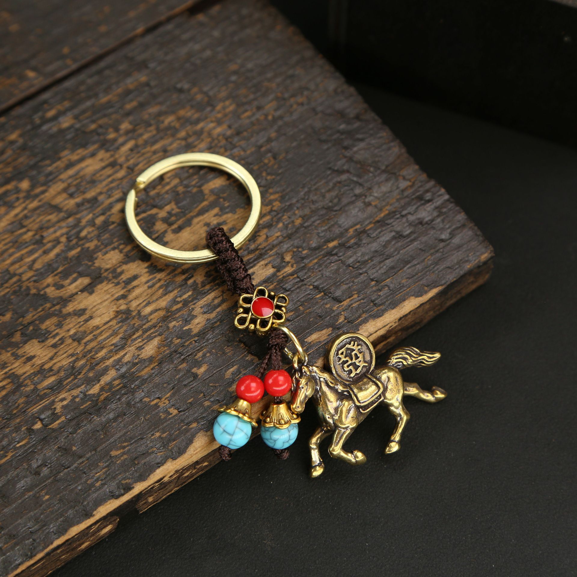 황동, 키 체인 펜던트 남성과 여성의 자동차 키 백 펜던트 레트로 오래된 민족 스타일 호이스트스토어 가기