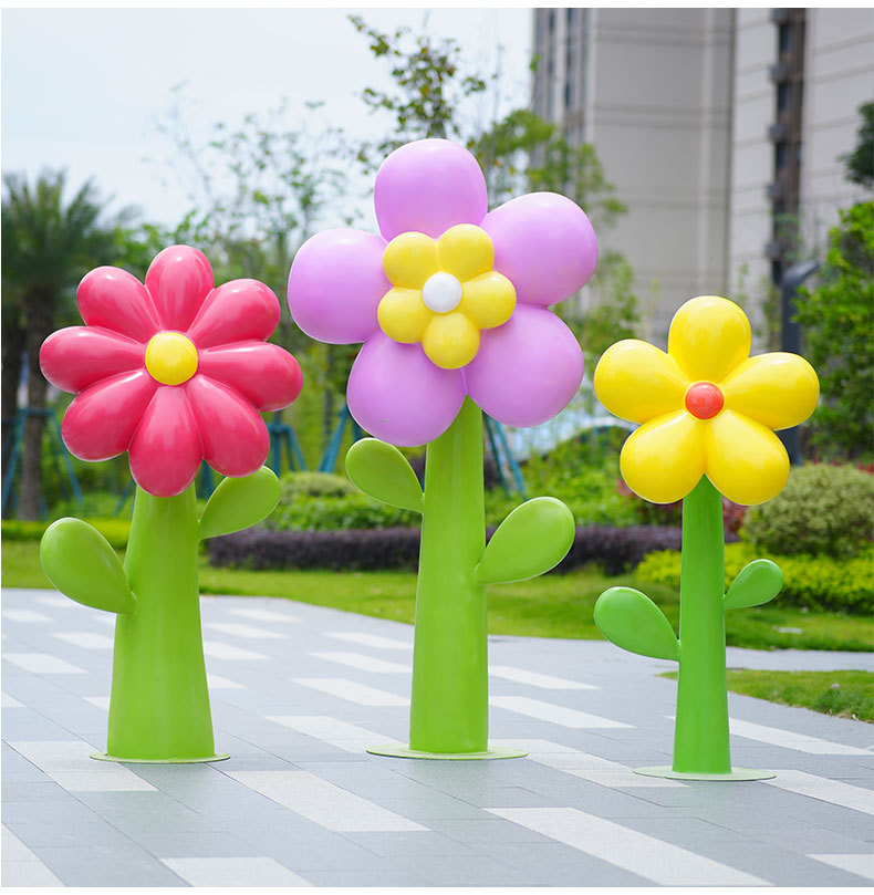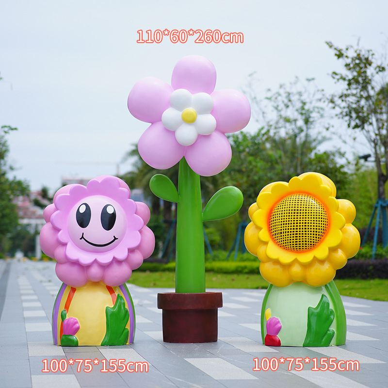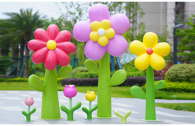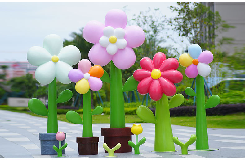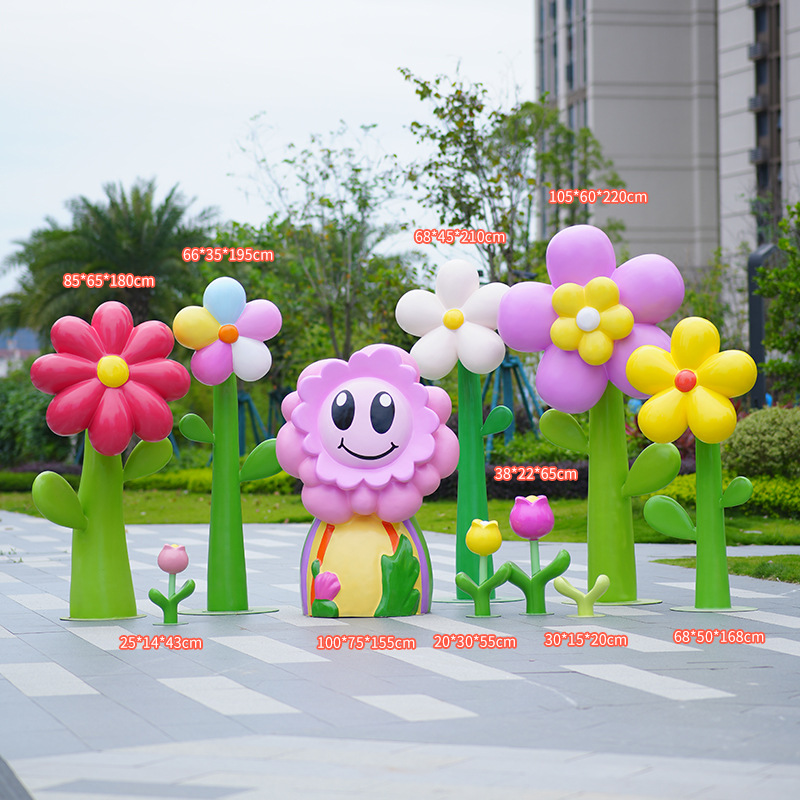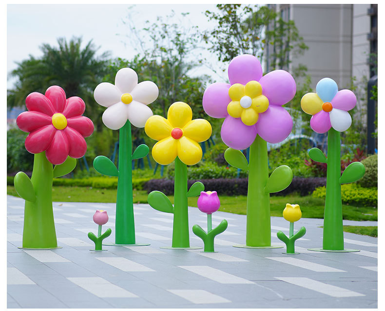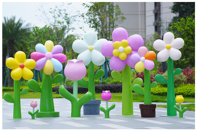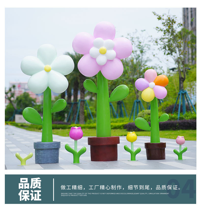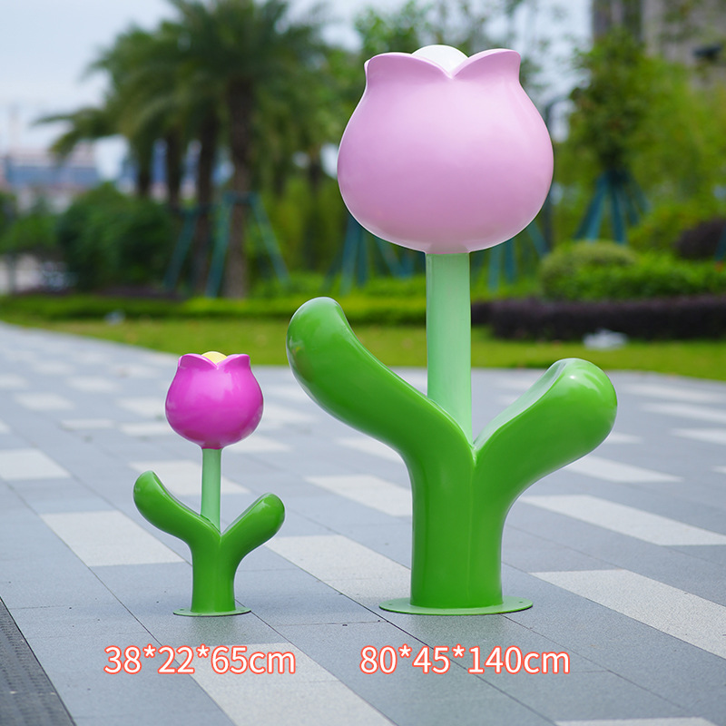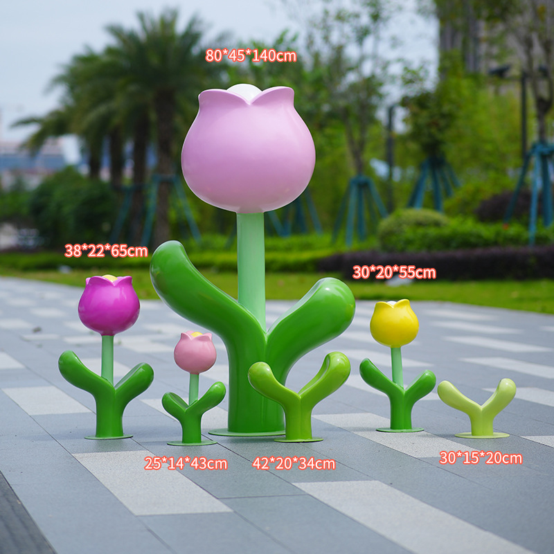유리섬유 벽걸이형 조화 조각상, 야외 장식용, 쇼핑몰 및 관광지용, 조화 튤립 잔디 장식품스토어 가기