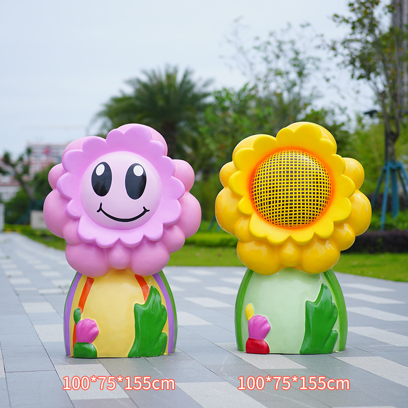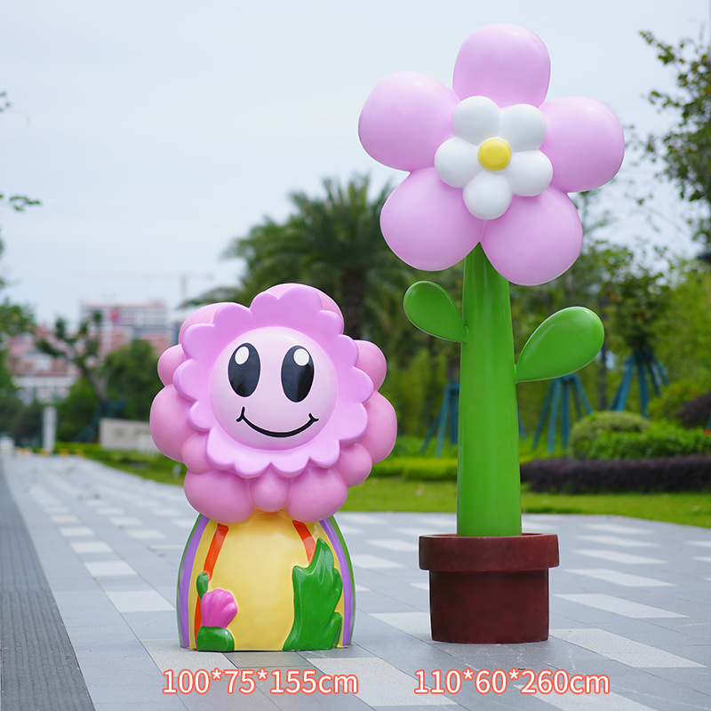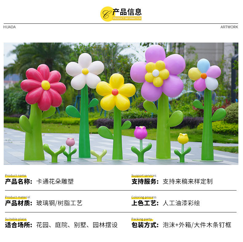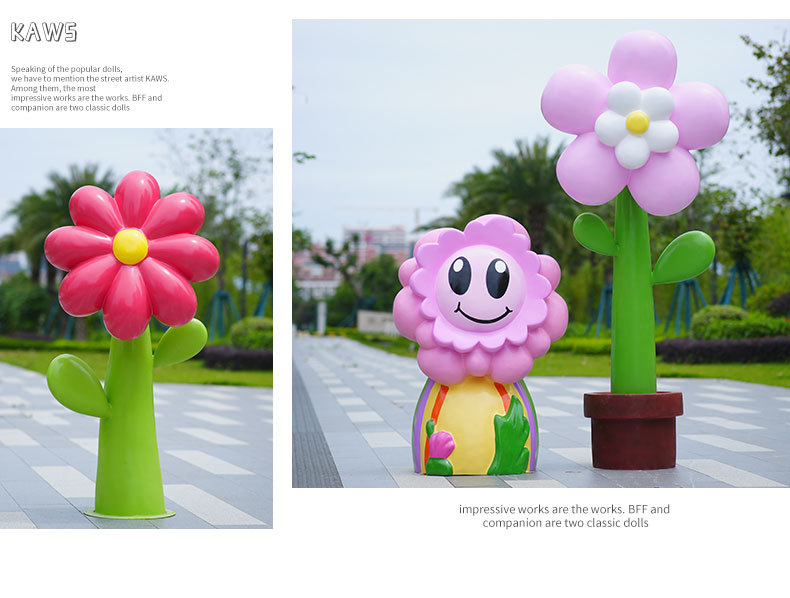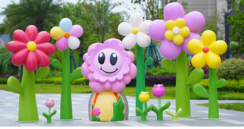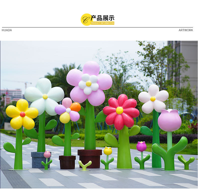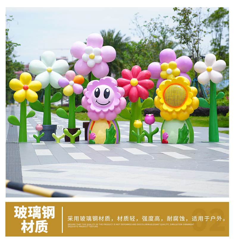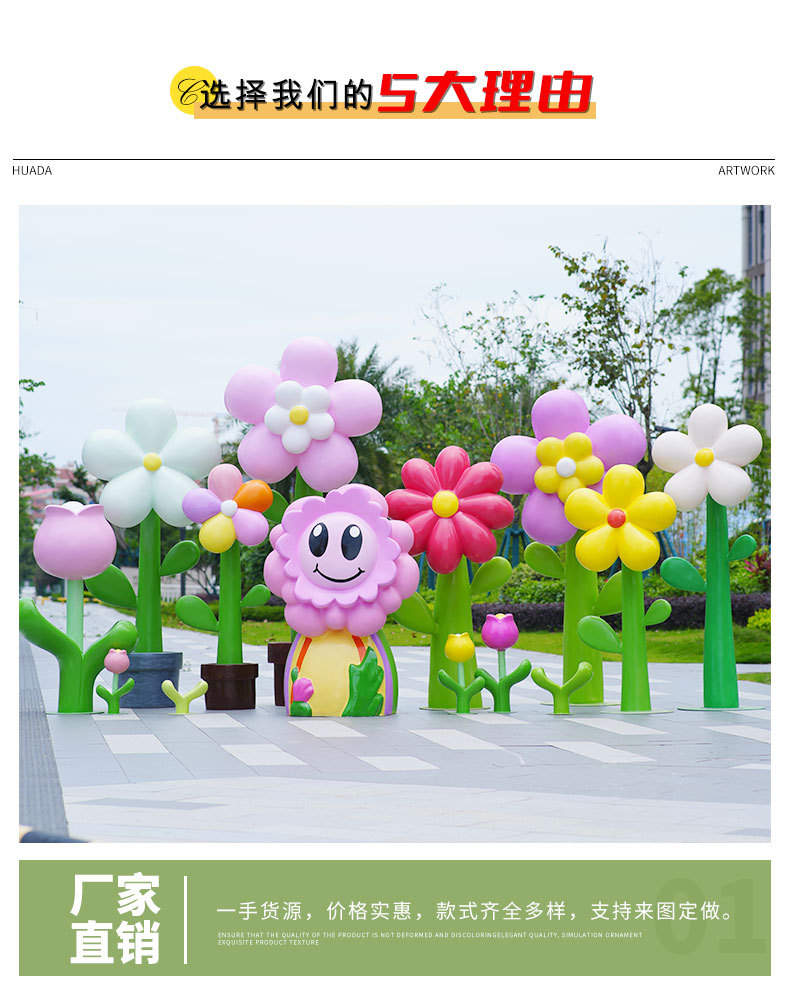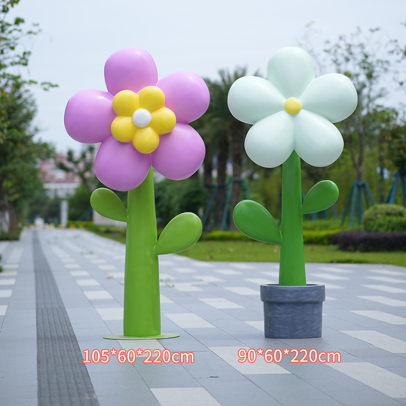 유리섬유 벽걸이형 조화 조각상, 야외 장식용, 쇼핑몰 및 관광지용, 조화 튤립 잔디 장식품스토어 가기