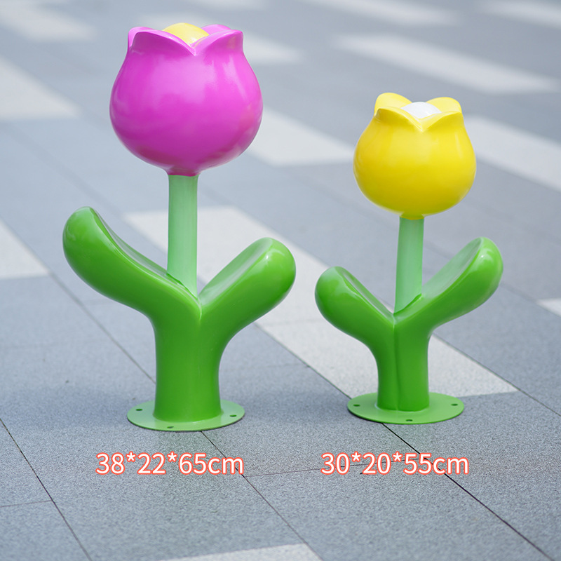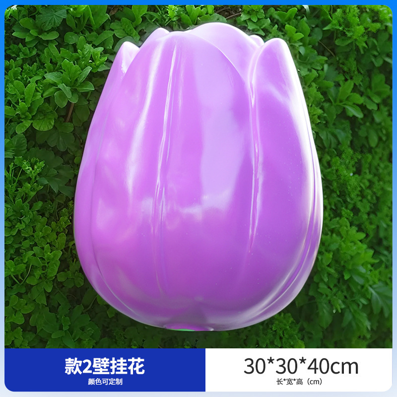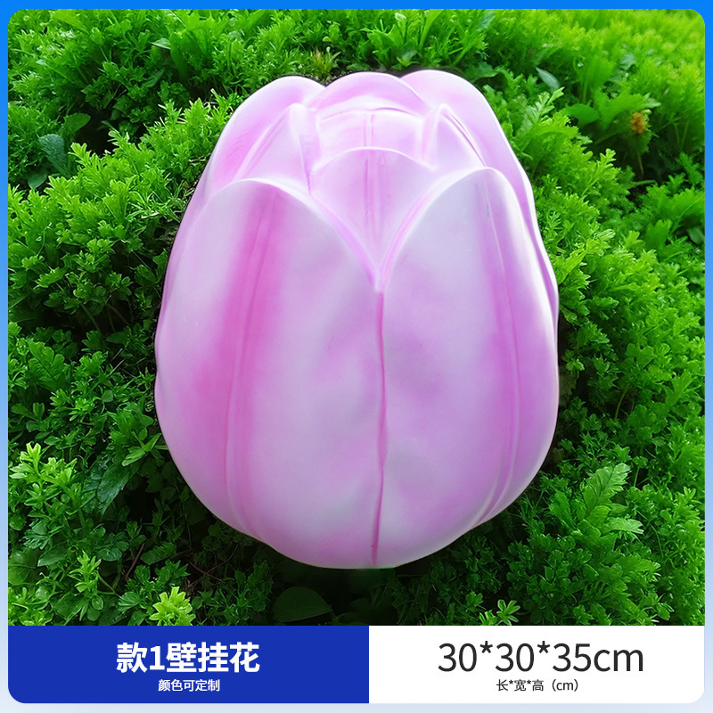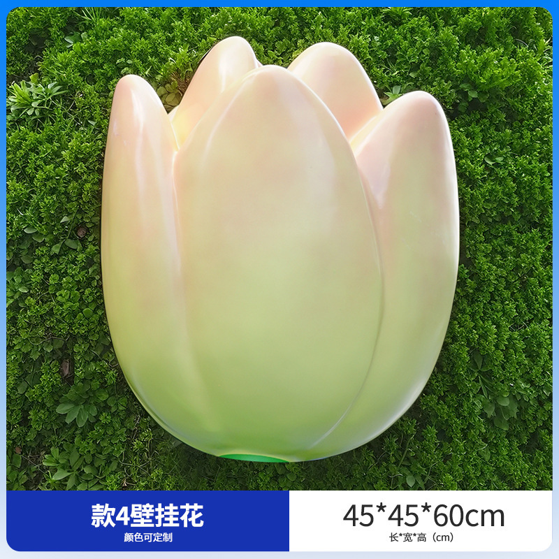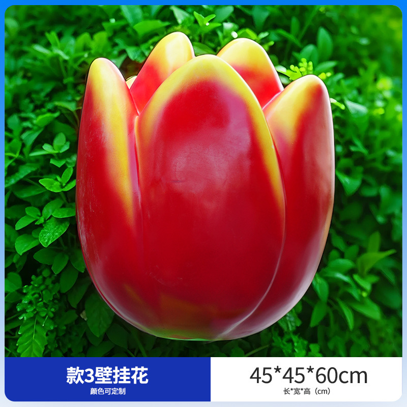 유리섬유 벽걸이형 조화 조각상, 야외 장식용, 쇼핑몰 및 관광지용, 조화 튤립 잔디 장식품