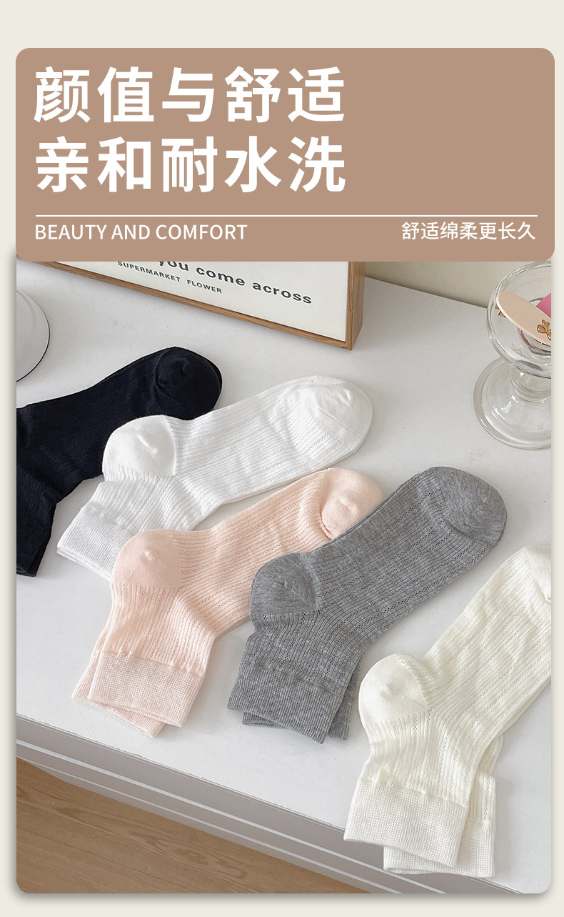 봄과 여름 양말 여성 중공 빛 통기성 짧은 튜브 양말 간단한 여성 양말 단색 줄무늬 조커 메쉬 양말 도매스토어 가기