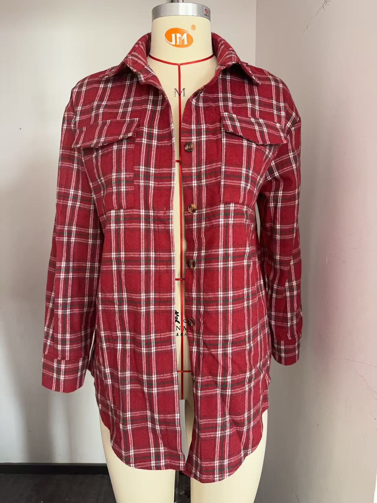아마존 가을과 겨울 국경 유럽과 미국 여성의 2024 새로운 캐주얼 패션 느슨한 체크 무늬 포켓 셔츠 여성