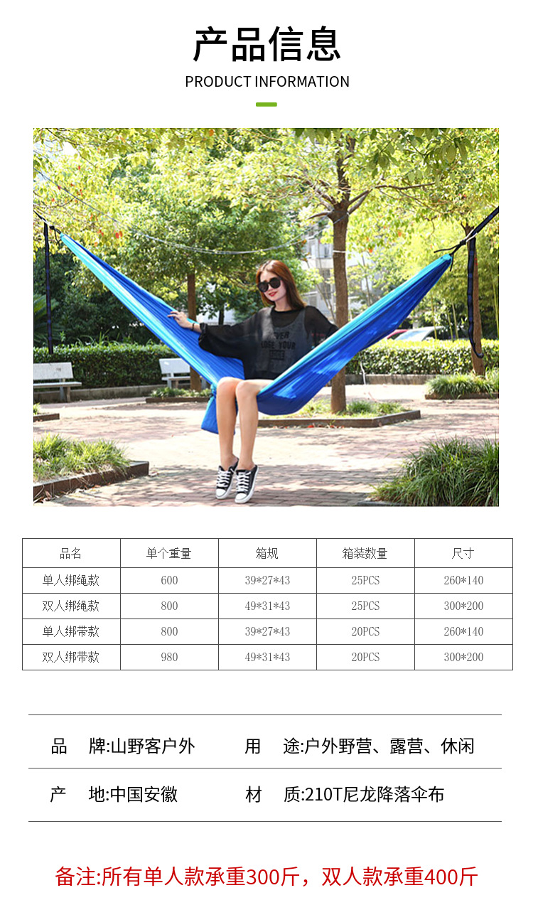공장 직접 야외 싱글 더블 낙하산 천 해먹 컬러 매칭 나일론 넓어진 스윙 실내 레저