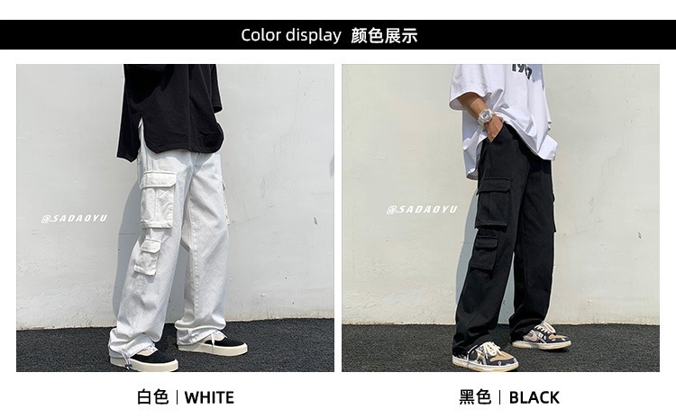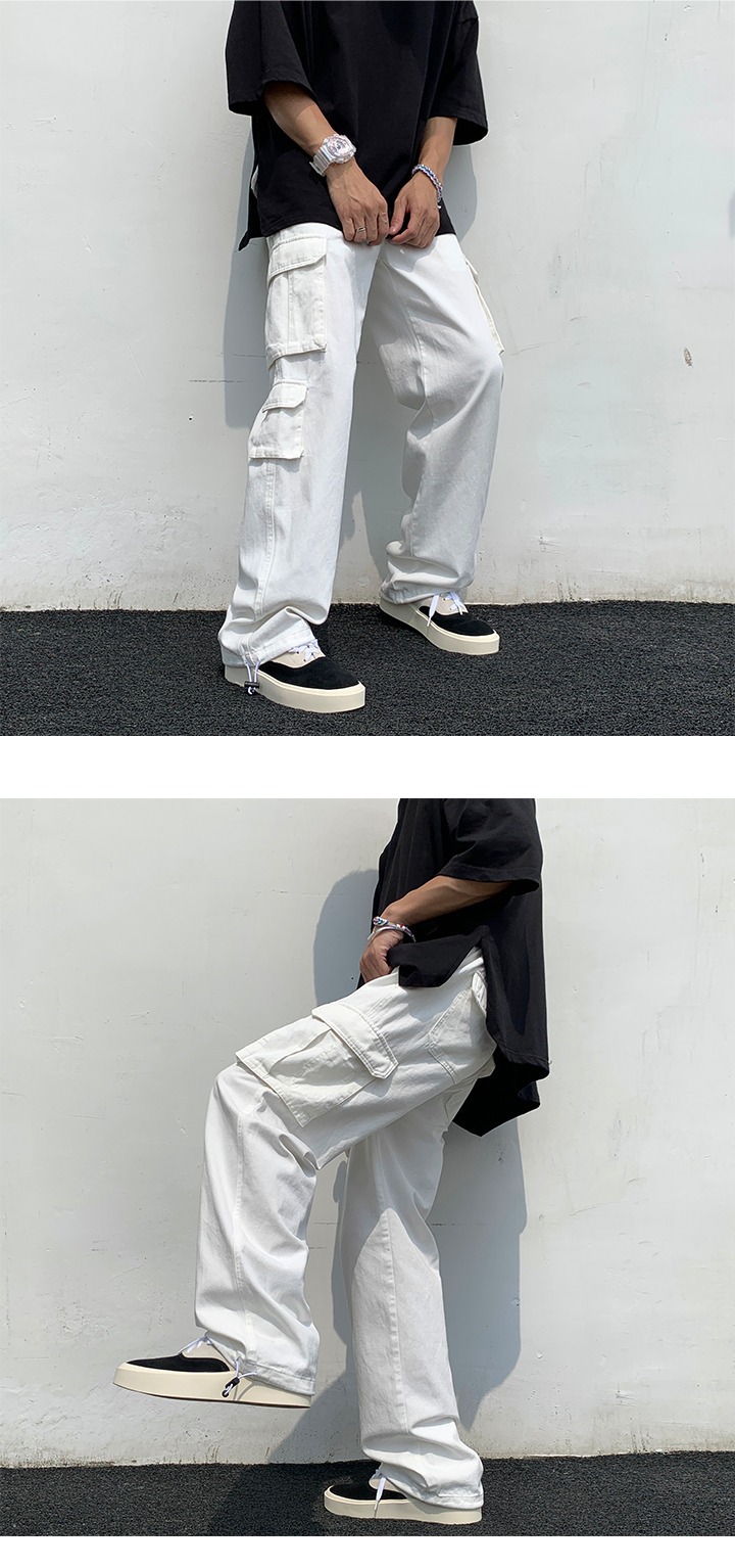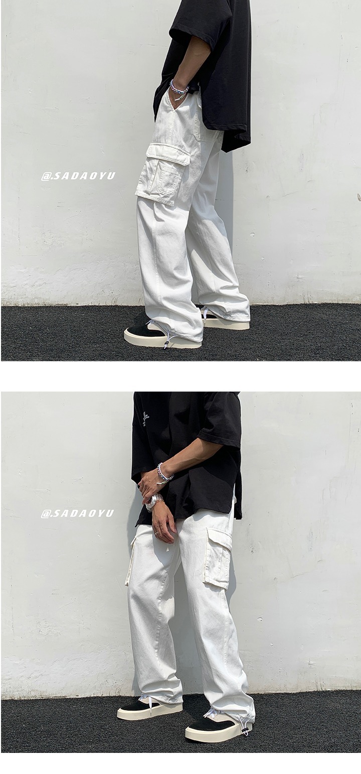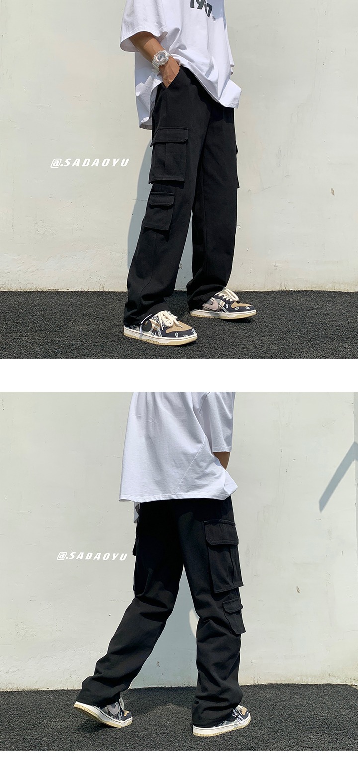 작업복 남성 트렌디 브랜드 인스타그램 봄과 가을 드로우 스트링 바지 남성용 한국식 트렌디 스트레이트 루즈 캐주얼 바지스토어 가기