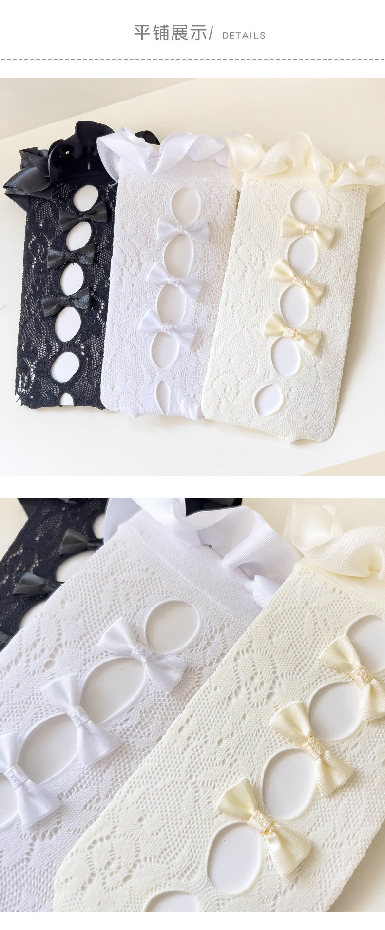 女童洛丽塔中筒袜子春夏季薄款蝴蝶结儿童女孩公主蕾丝花边