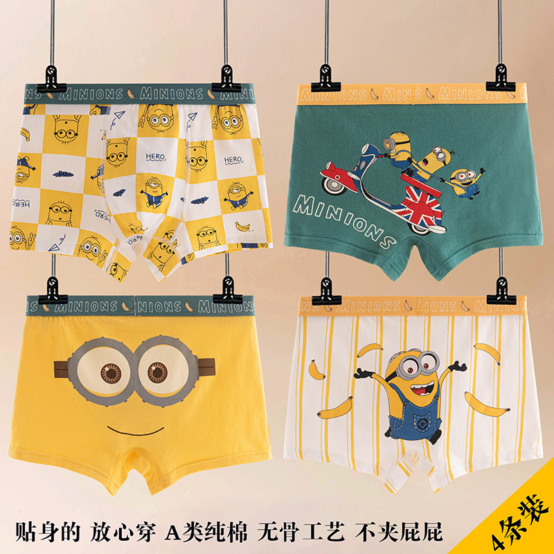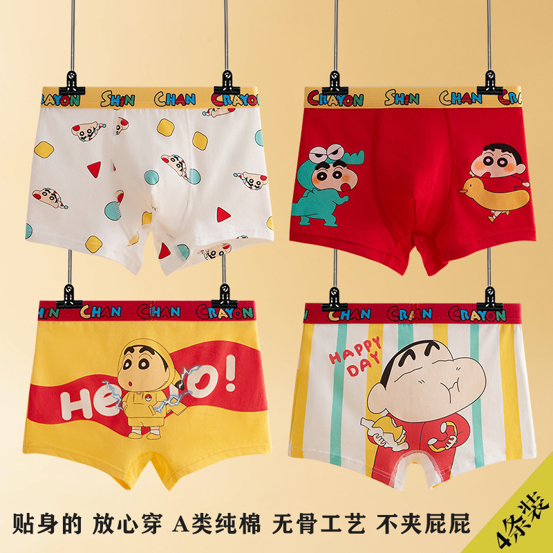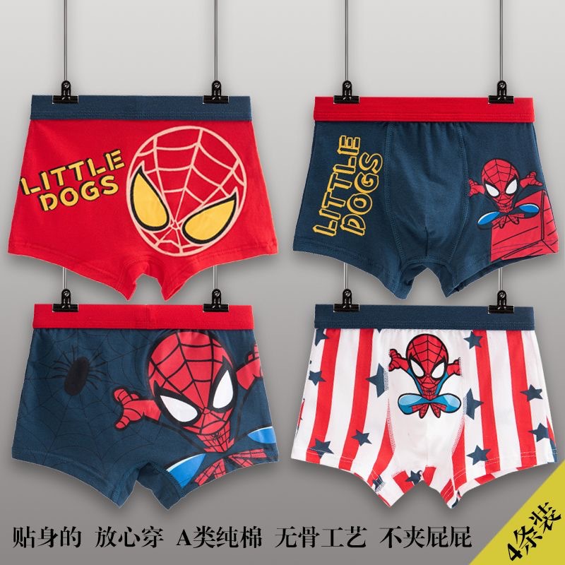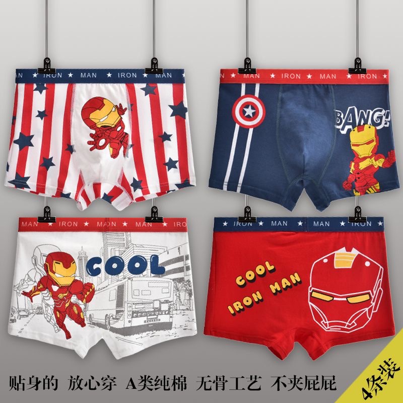 어린이 속옷 코튼 보이즈 중년 남학생과 학생 만화 코튼 쇼트 바지 4 개 코너스토어 가기