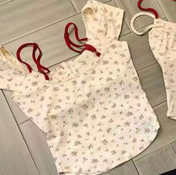 여성용 투피스 플로럴 슬리브리스 탑 여름용 슬림 핏 섹시한 반팔 상의스토어 가기
