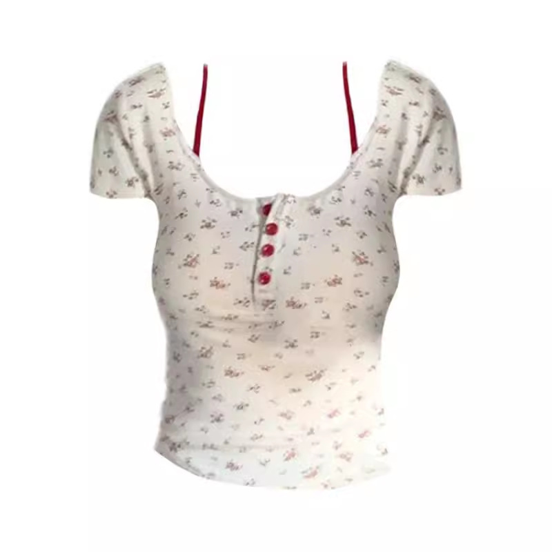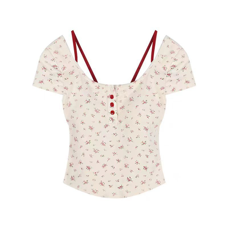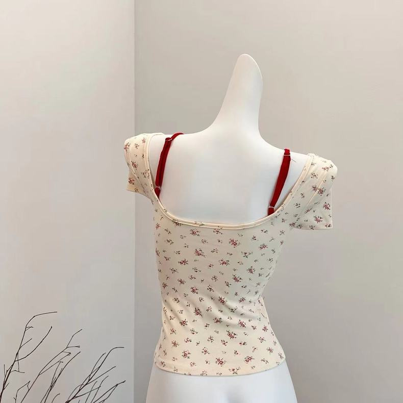 여성용 투피스 플로럴 슬리브리스 탑 여름용 슬림 핏 섹시한 반팔 상의