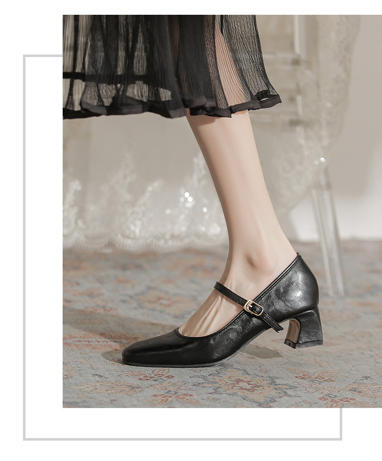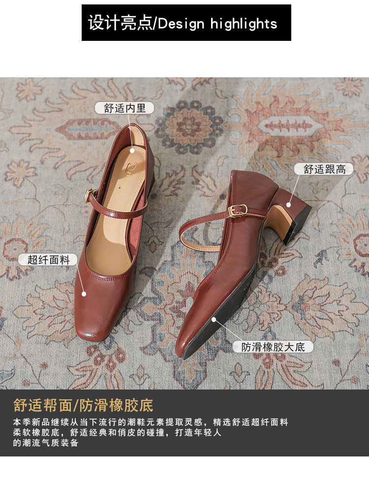 우아한 레트로 작은 스퀘어 힐 하이힐 2025 새로운 레드 메리 제인 여성용 버클이 달린 세련된 싱글 레이어 신발스토어 가기