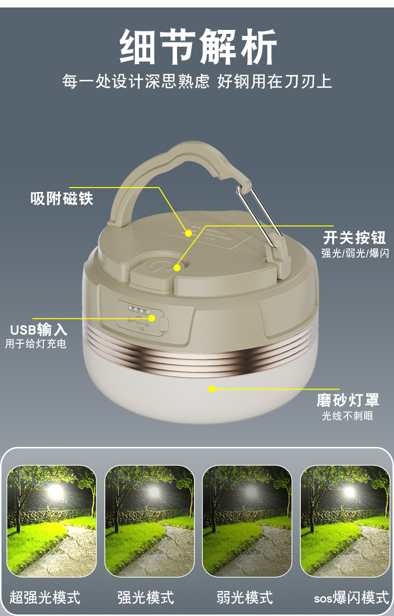 캠핑 랜턴, 매우 긴 배터리 수명, 아마존 해외 전자상거래, 매우 밝은 미니 텐트 야외 캠핑 램프, 충전식 조명스토어 가기