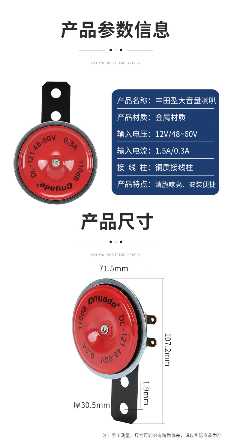 야드 세발 자전거 오토바이 전기 자동차 범용 12v24v48v60v72v 지능형 전기 경적 높은 피치 방수스토어 가기