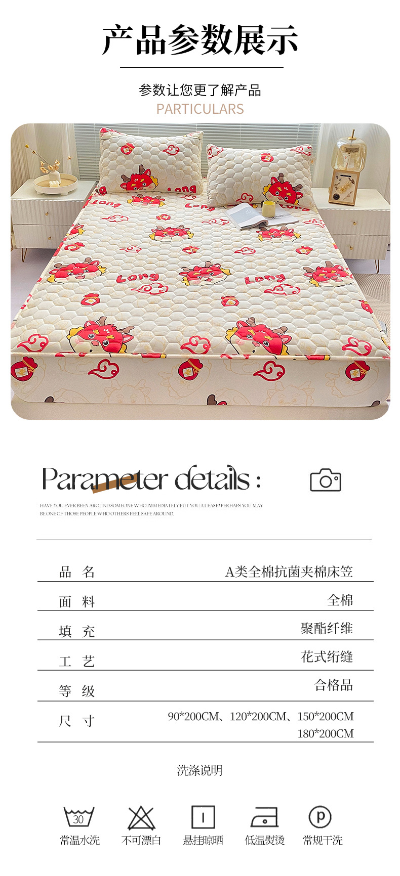 • 200*220cm 싱글 침대 모자 [모성 및 유아 등급 클래스] 는 5-30cm 매트리스에 적합합니다.
