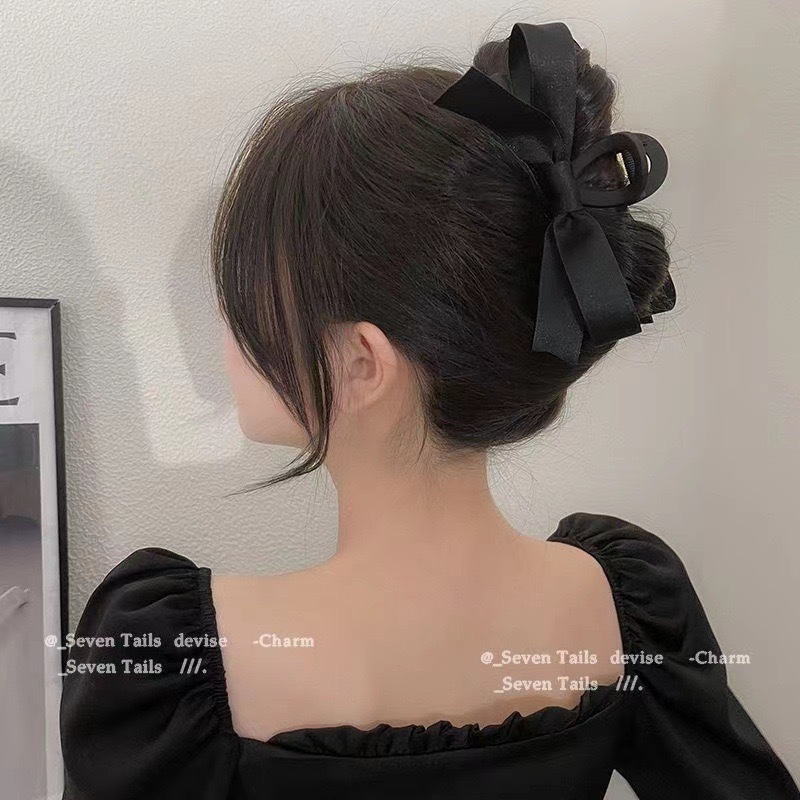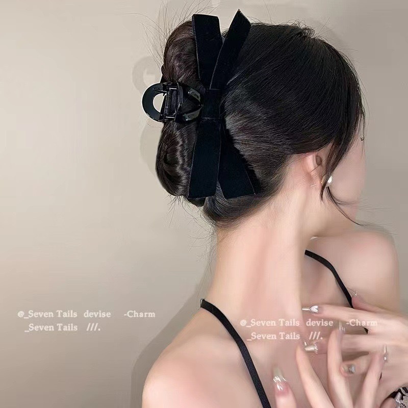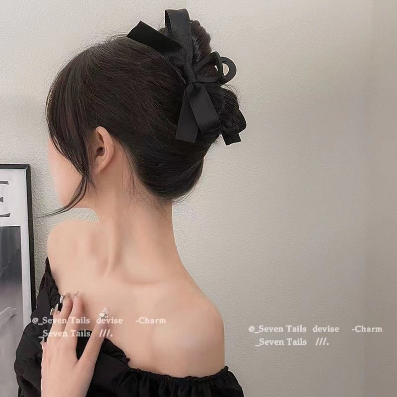 헵번 스타일 활 그랩 클립 여성용 블랙 간단한 하이 엔드 머리 상어 클립 헤어핀 클립 헤드웨어스토어 가기