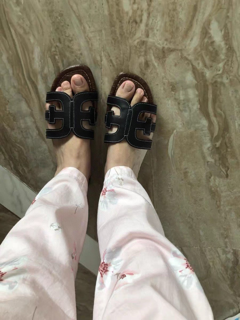 외부 착용 플랫 슬립 방지 중공 간단한 비치 신발 슬리퍼 E 자형 신발 인터넷-유명한 플랫 슬리퍼 미끄럼 방지