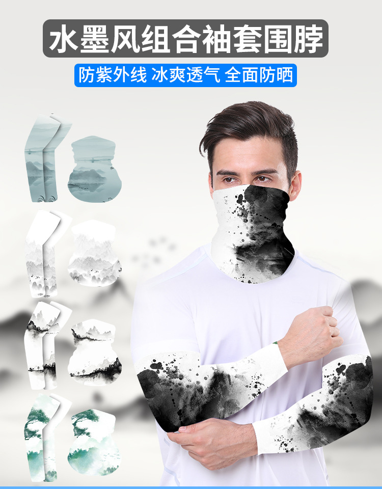 여름 썬 스크린 소매 야외 승마 통기성 아이스 실크 매직 헤드 스카프 국가 스타일 잉크 인쇄 아이스 슬리브 스카프 조합