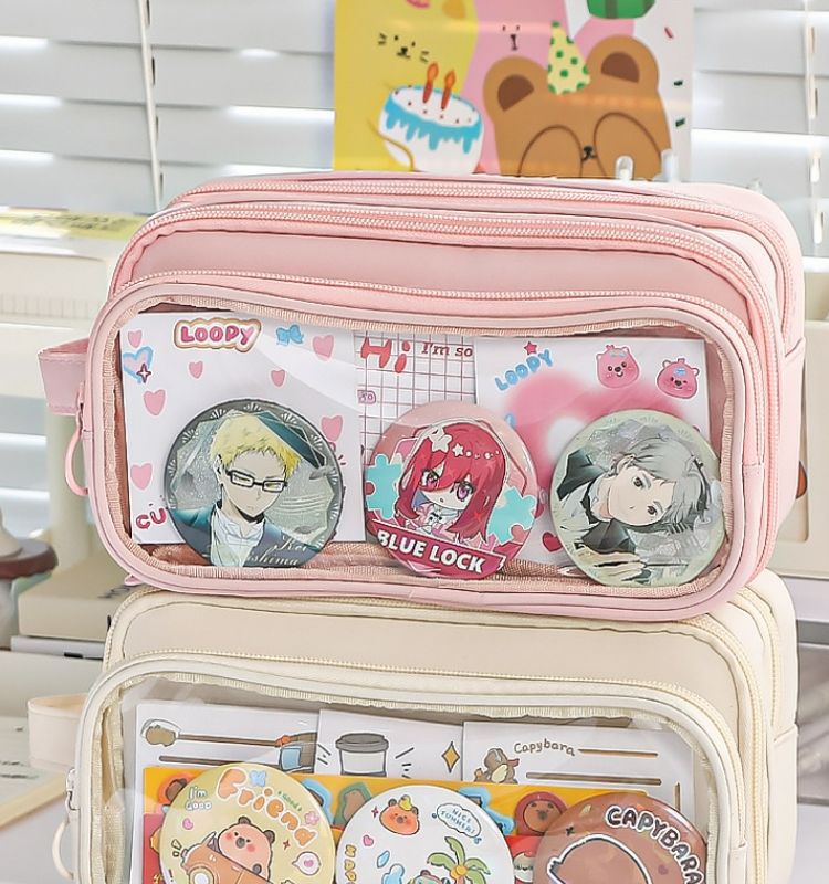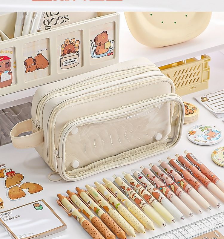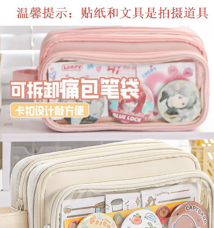 Ins 바람 투명 연필 케이스 통증 가방 작은 음식 diy 소재 새로운 소년 10 층 대용량 틈새 연필 케이스 문구