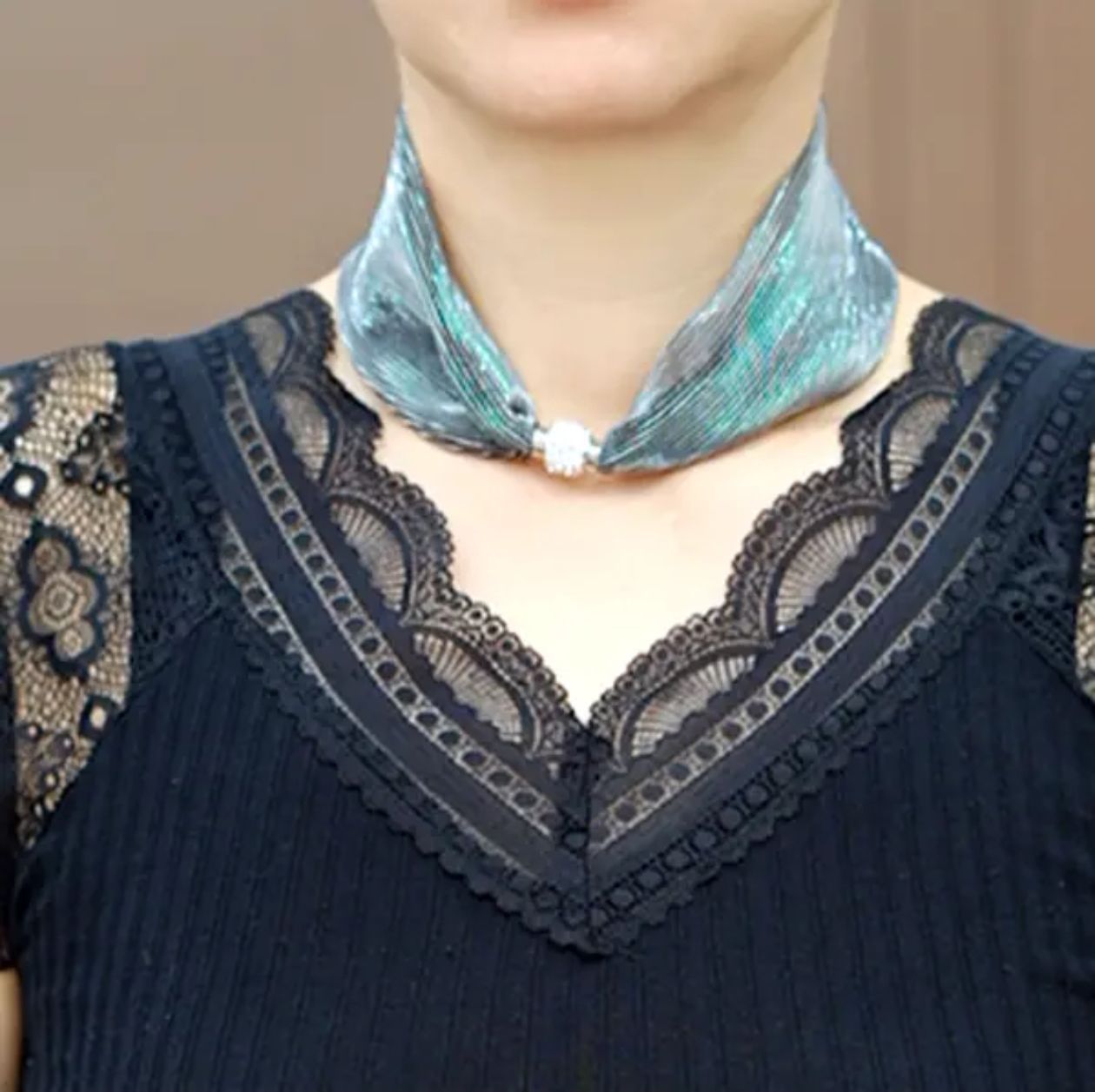 • 블랙 실버 그레이-화려한 마그네틱 버클 실크 스카프