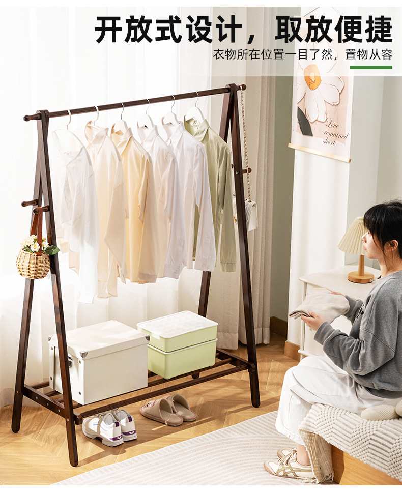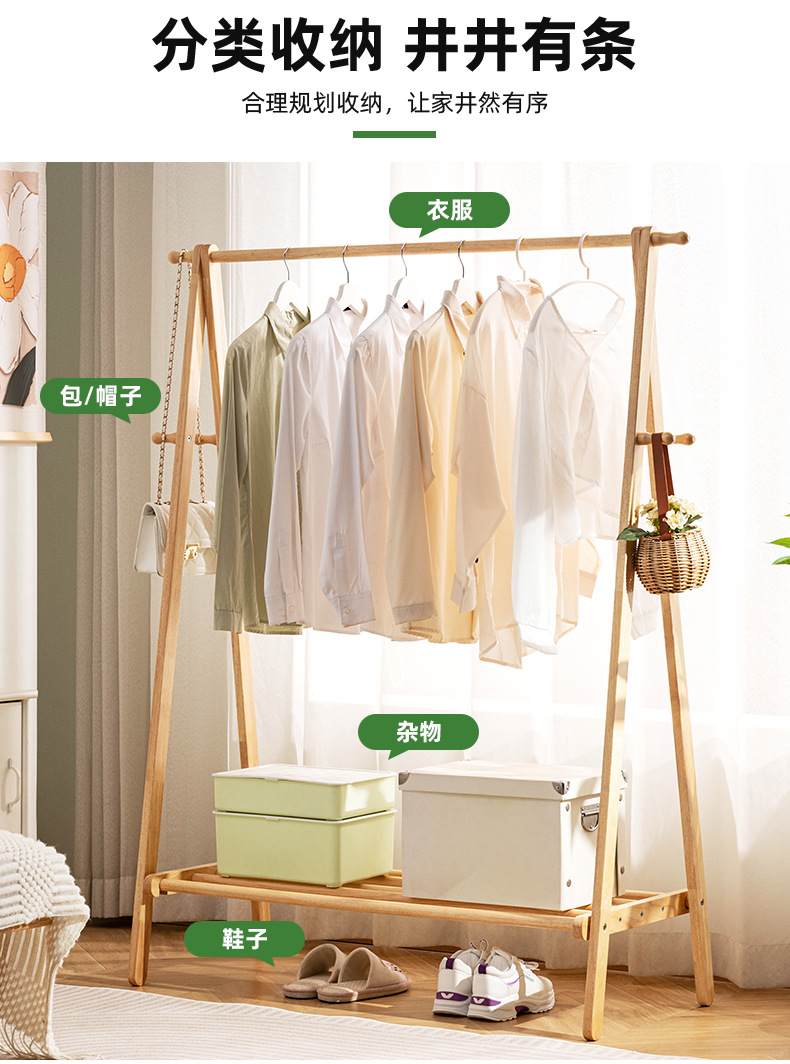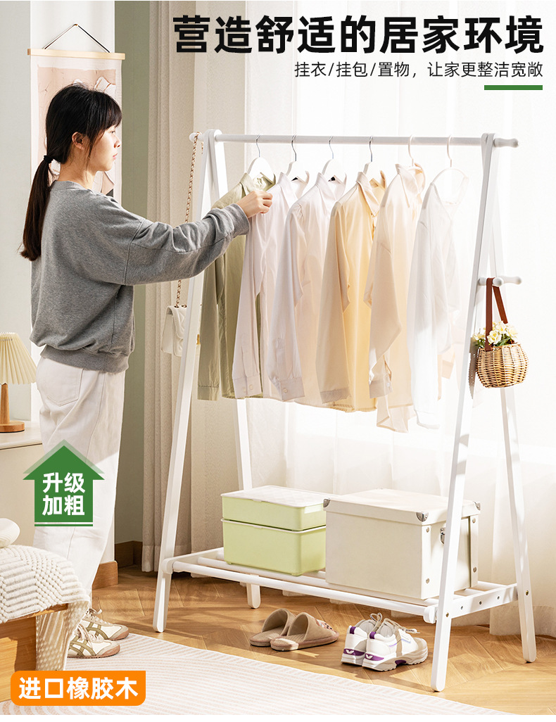 원목 옷걸이, 스탠드형 옷걸이, 옷걸이, 가정용 스탠드형 침실용 옷걸이, 심플한 디자인, 엄선된 제품