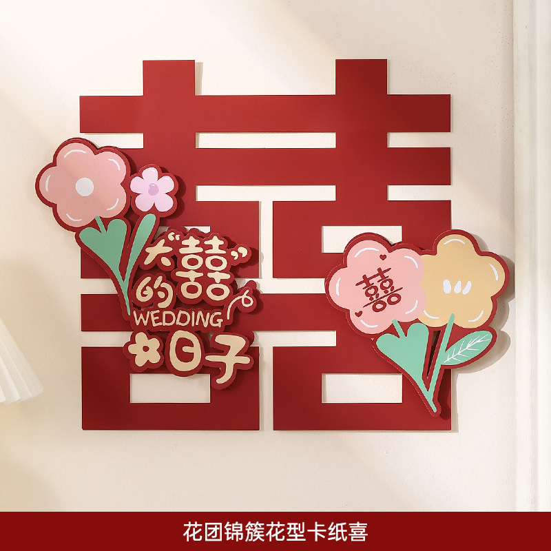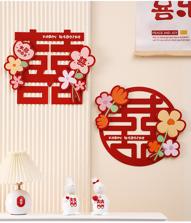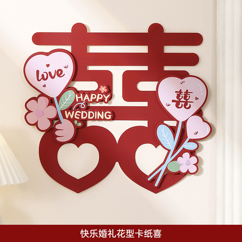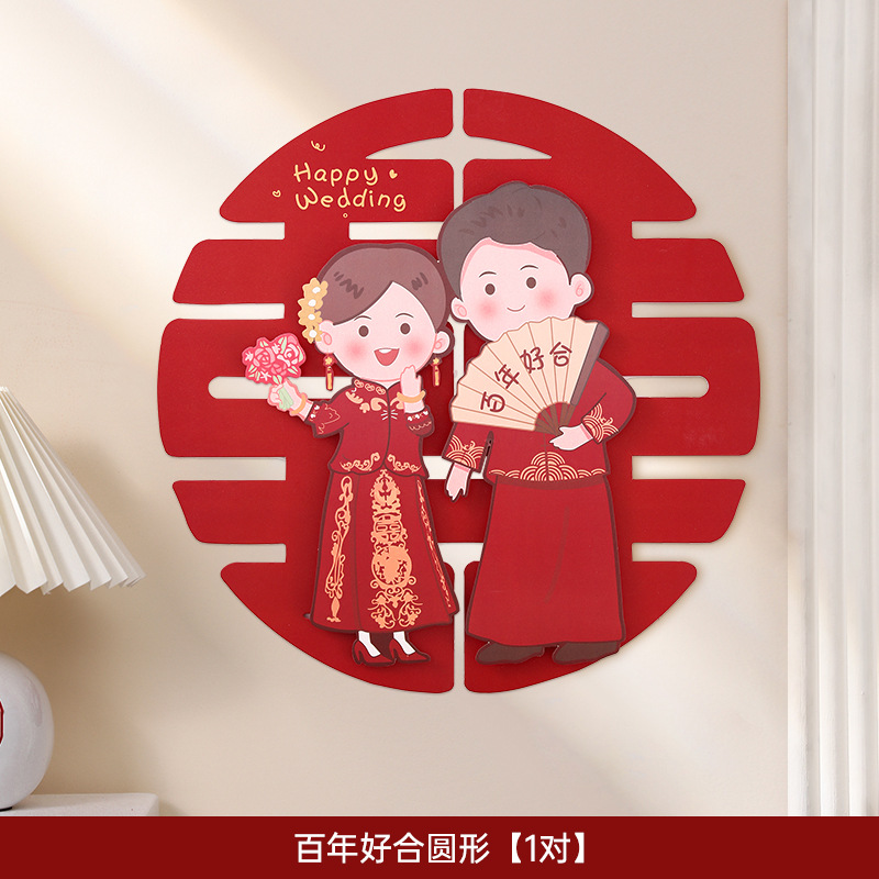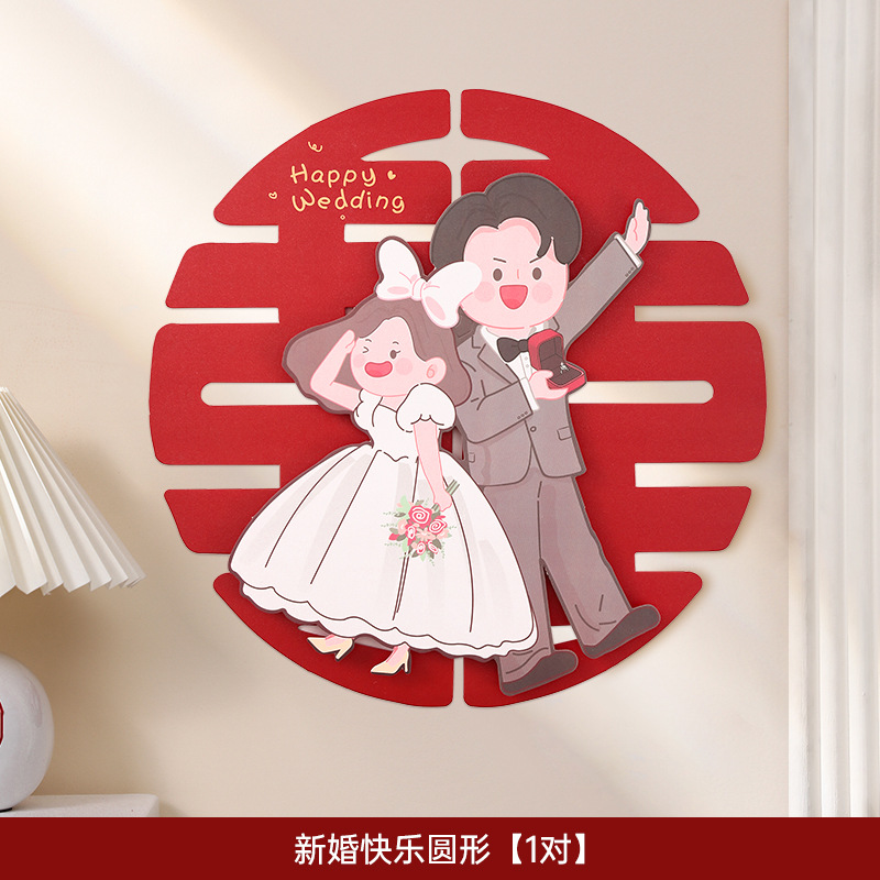 웨딩 룸 레이아웃 해피 캐릭터 스티커 웨딩 룸 도어 장식 거실 창 3 차원 만화 캐릭터 웨딩 용품스토어 가기