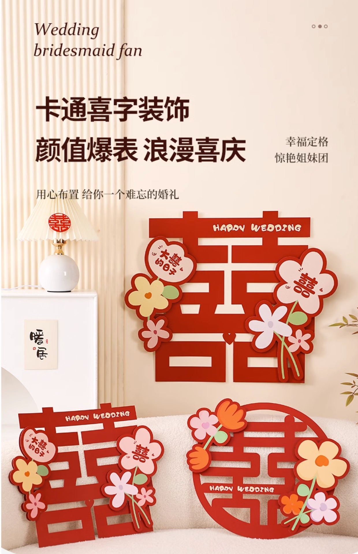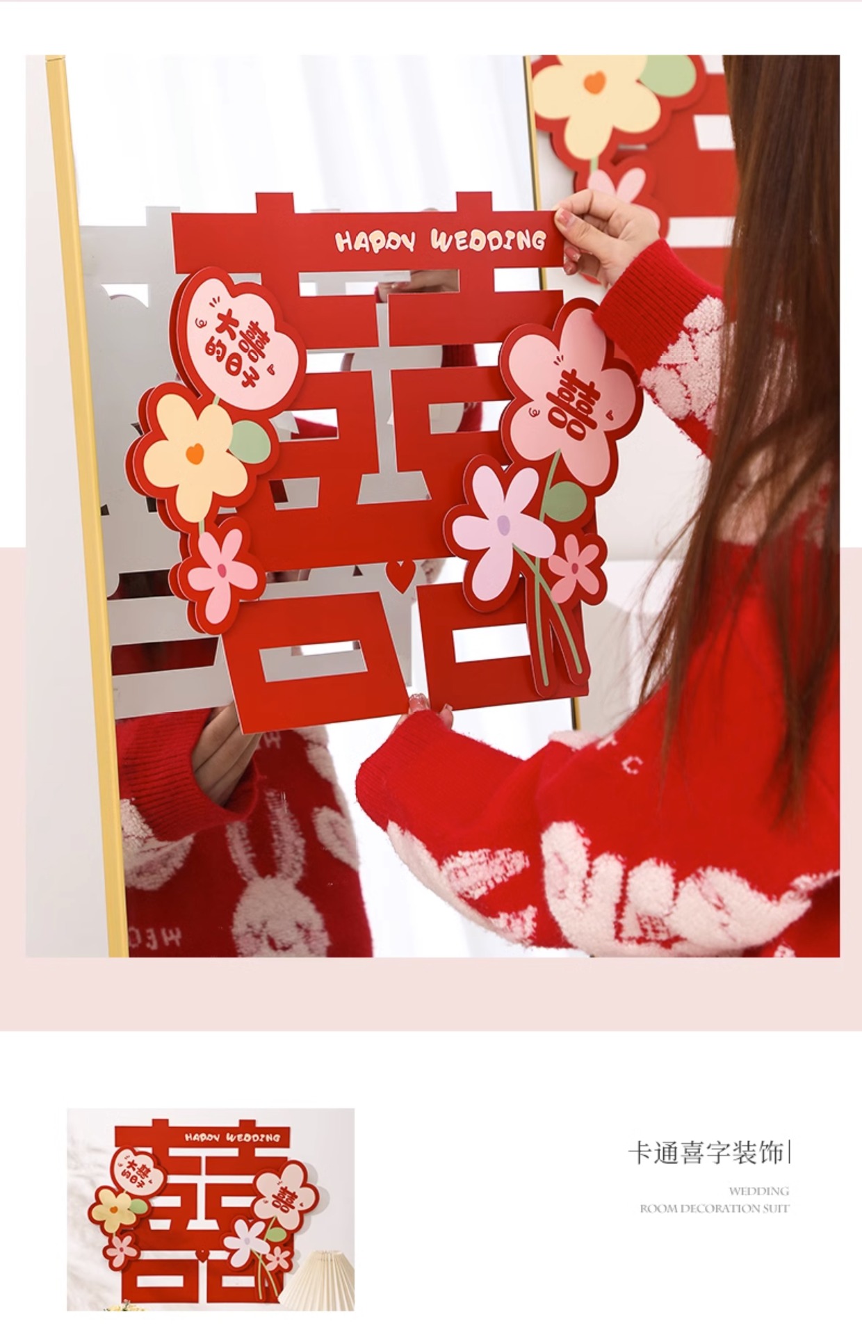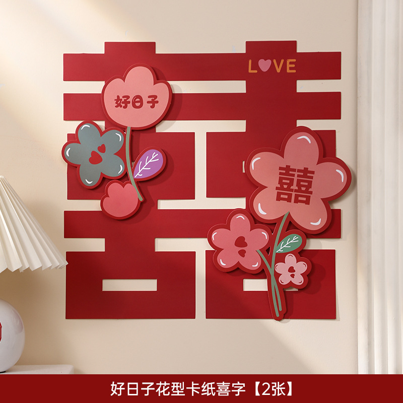 웨딩 룸 레이아웃 해피 캐릭터 스티커 웨딩 룸 도어 장식 거실 창 3 차원 만화 캐릭터 웨딩 용품스토어 가기