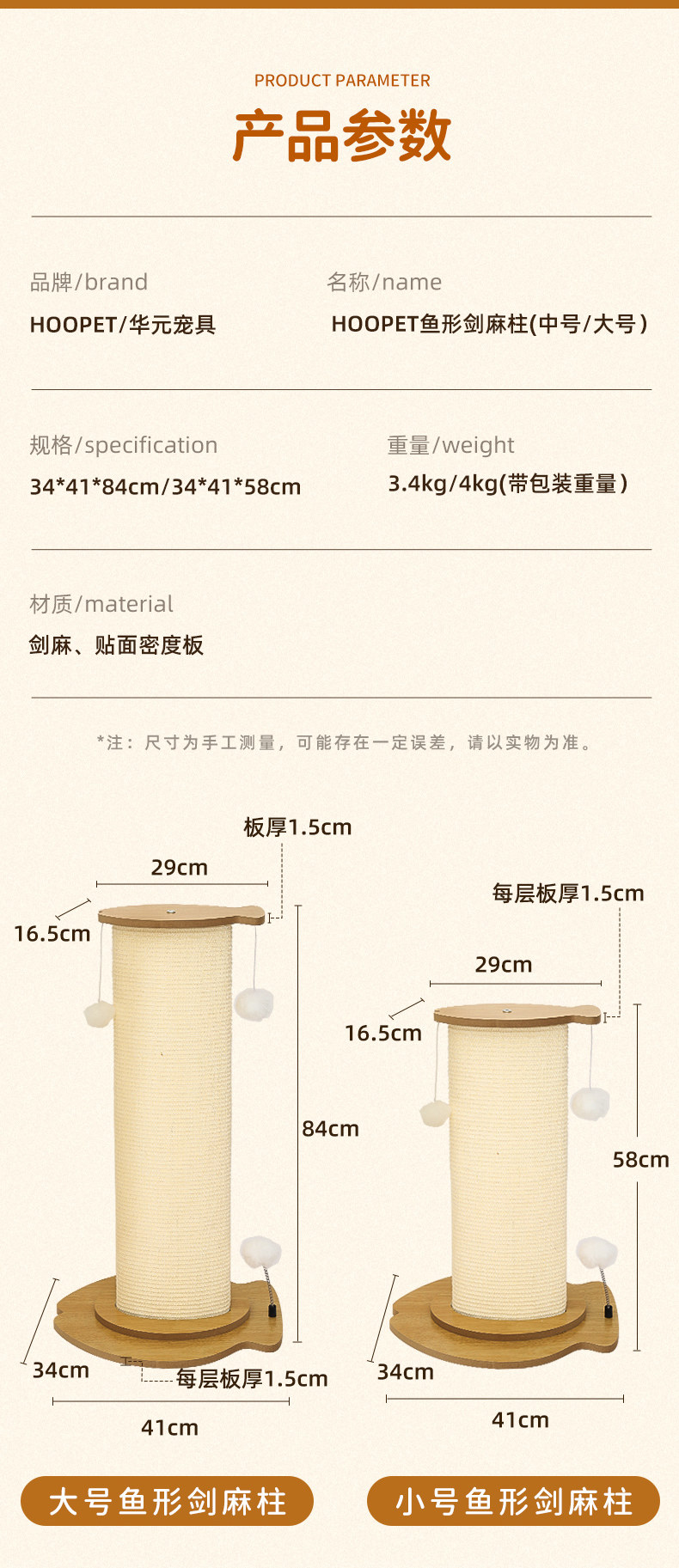 【品名】:HOOPET 鱼形剑麻柱-(中号/大号)