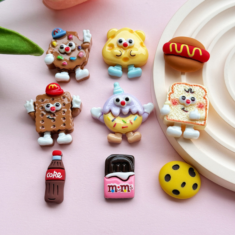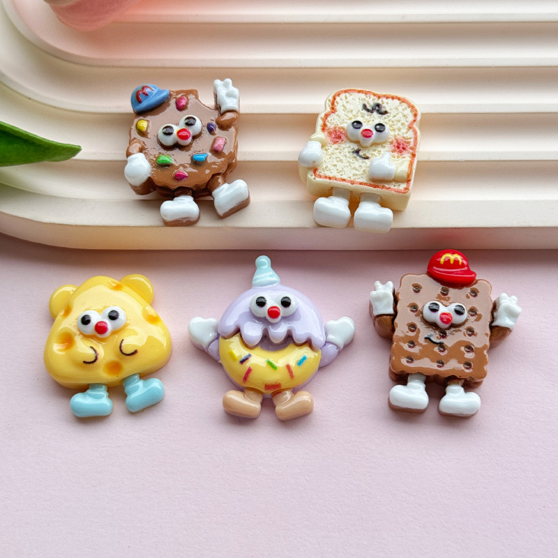음식 및 놀이 비스킷 작은 사람 세트 수지 DIY 액세서리 휴대 전화 케이스 구멍 신발 패치 헤어핀 헤어 액세서리 소재