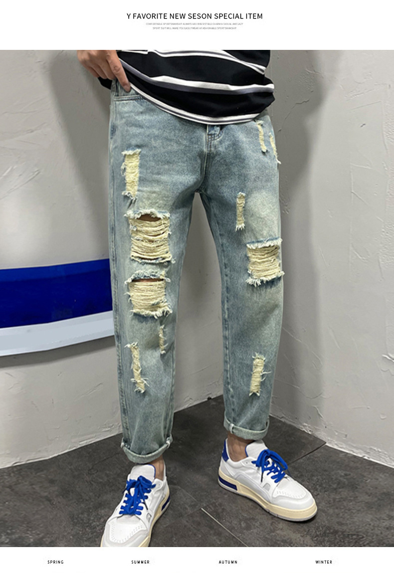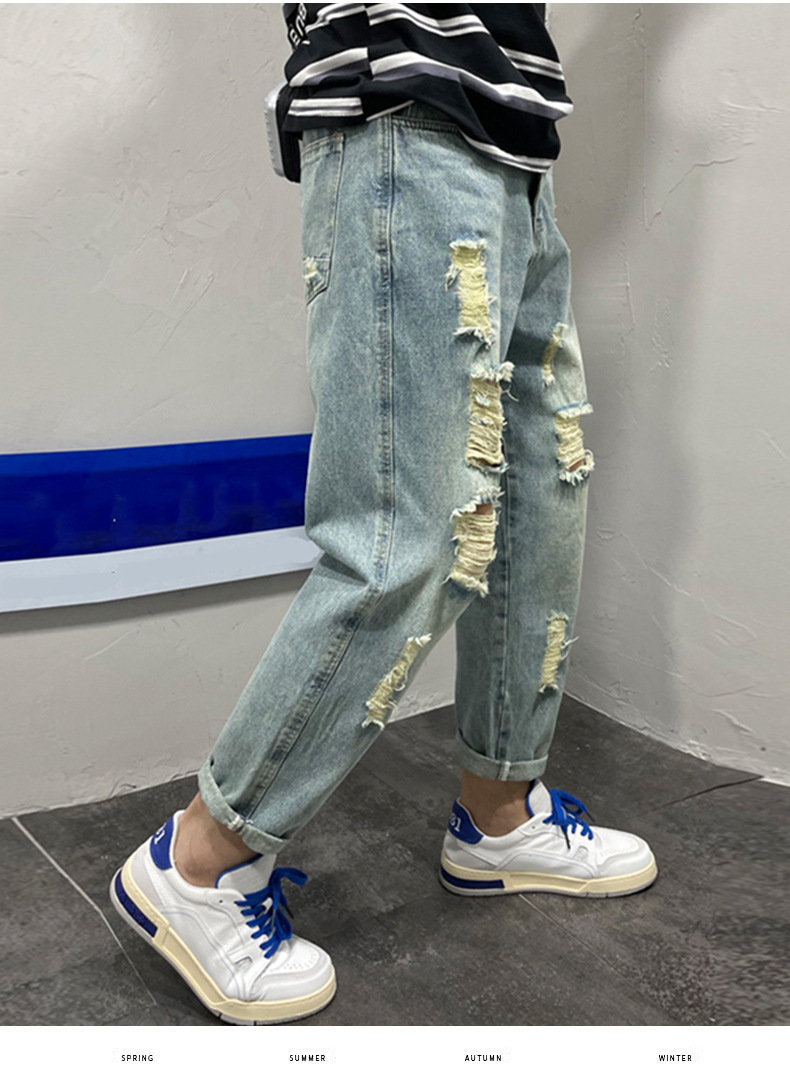 2024 년 여름 뉴 남성용 청바지 라이트 럭셔리 세련된 핸섬 올 매치 리핑 텍스처 슬림 핏 레깅스스토어 가기
